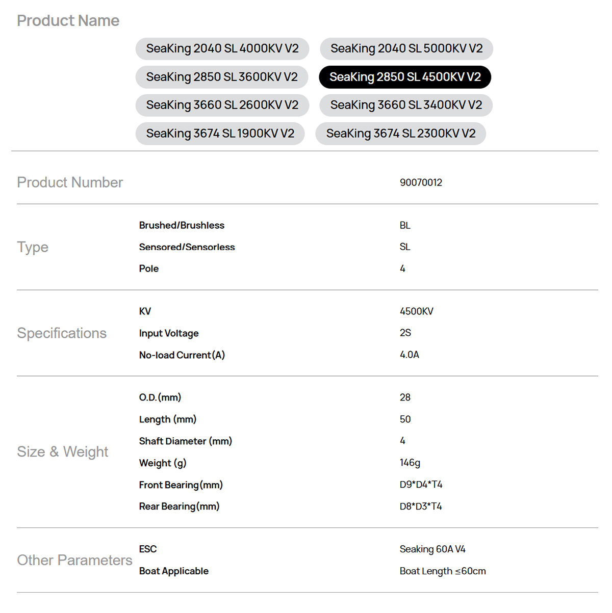 Model: SeaKing 2850 SL 4500KV V2
