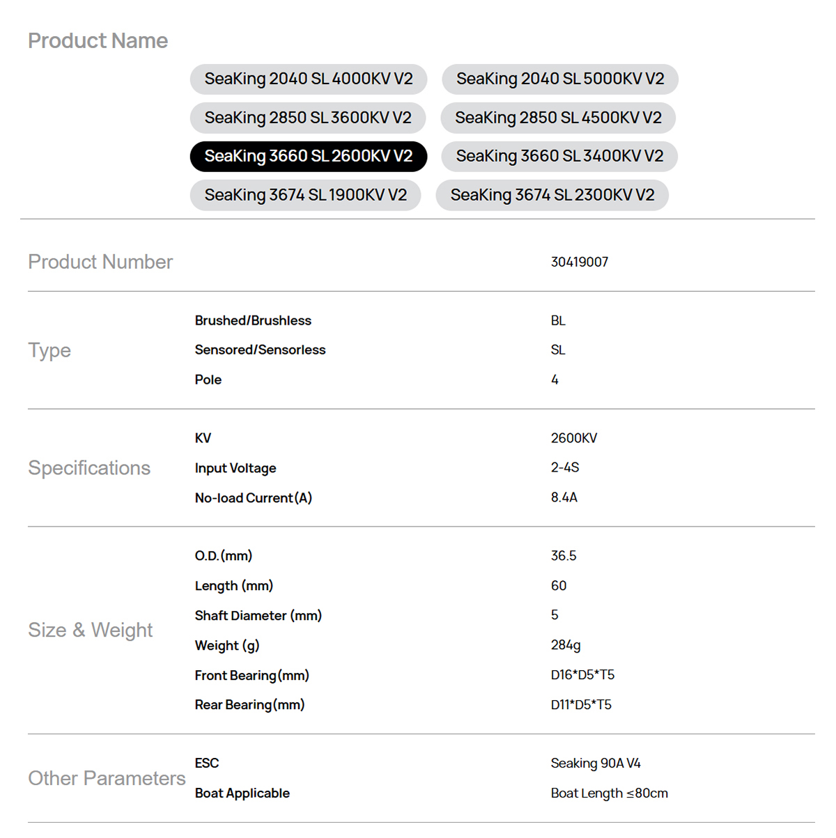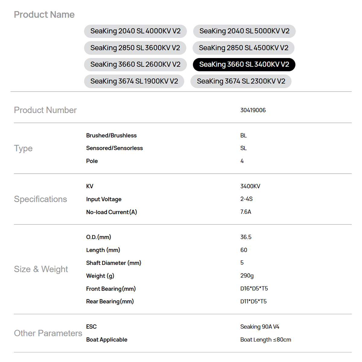 Perfectly compatible with Hobbywing Seaking V4 series ESCs, enabling smooth control and fast response;
