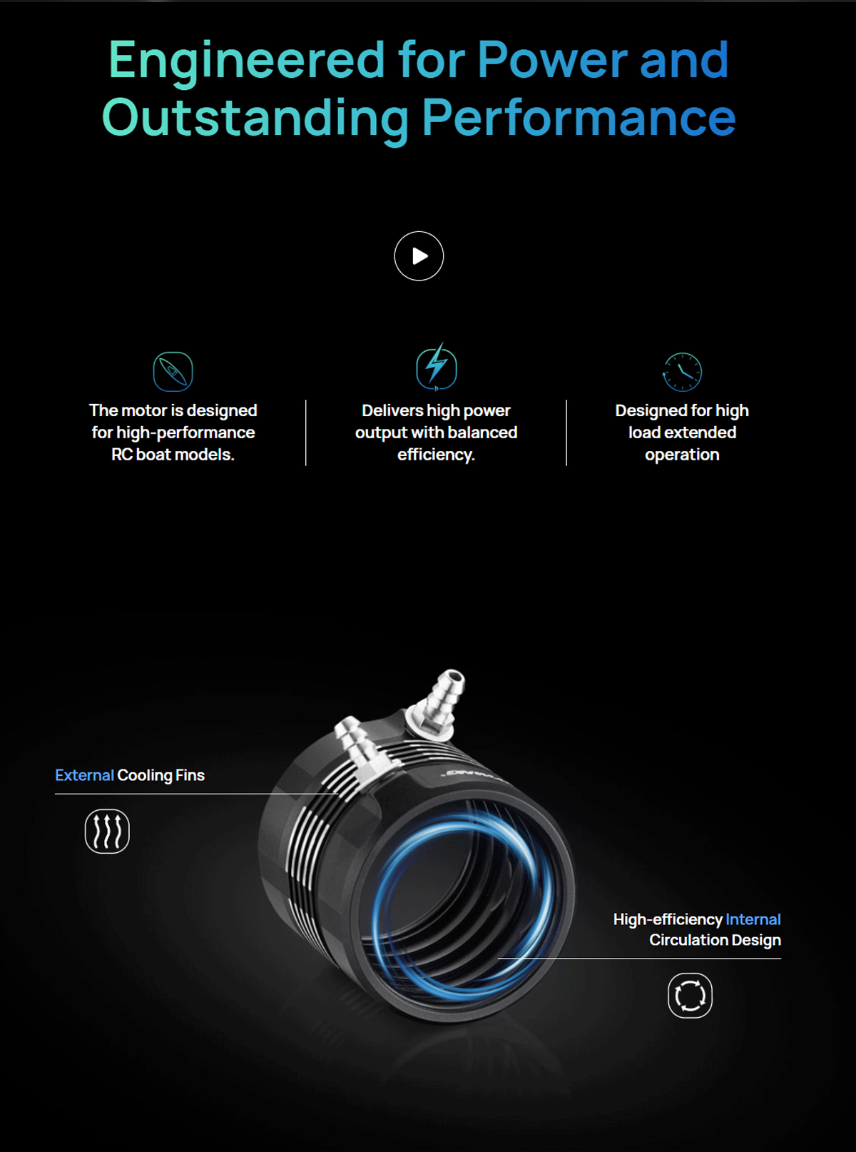Suitable for RC boat scenarios, with strong power and high explosive force, ideal for large-scale RC boats to operate at high power for long periods;