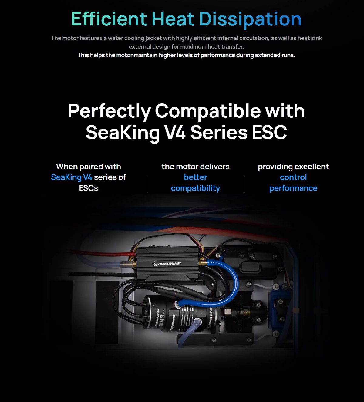 Perfectly compatible with Hobbywing Seaking V4 series ESCs, enabling smooth control and fast response;