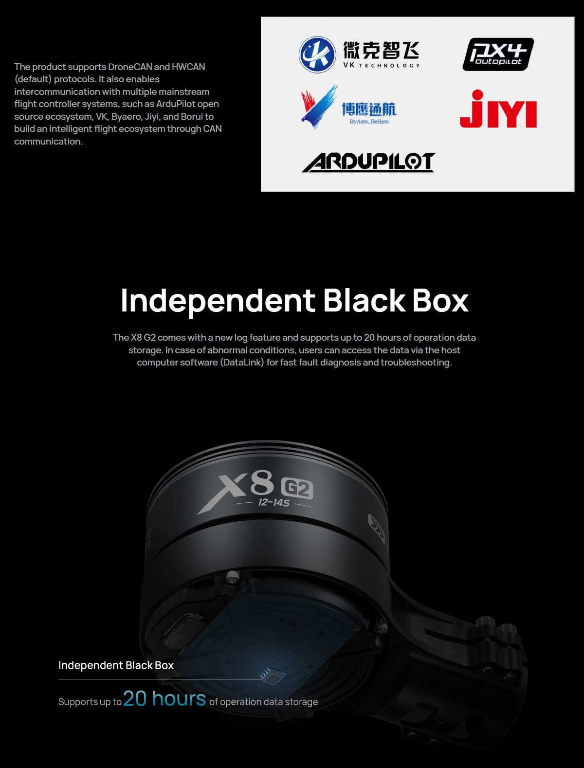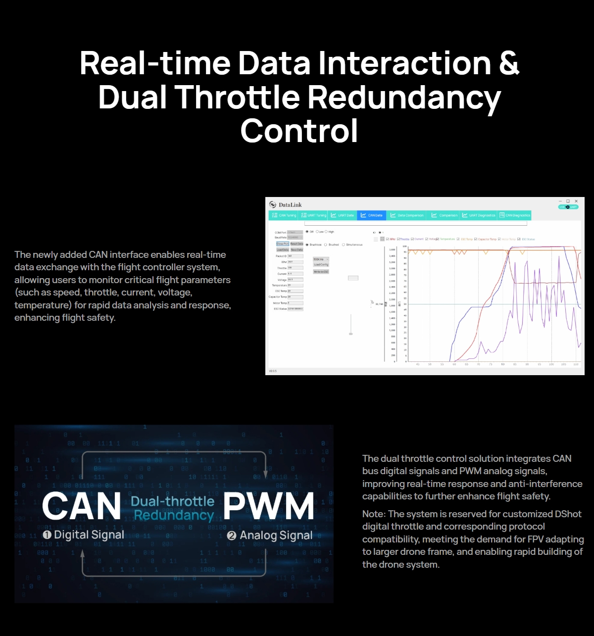 Wide Compatibility: Supports 12S-14S LiPo batteries, compatible with mainstream flight controller systems, seamless upgrade and mixed configuration of new and old products;