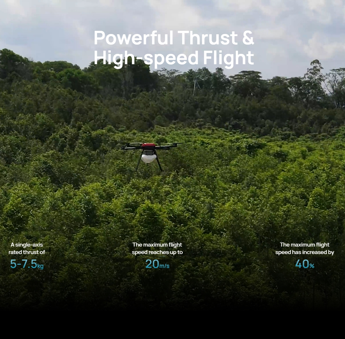 Powerful Performance: Single-axis rated thrust 5-7.5kg, max speed 20m/s (40% increase), 5% weight reduction while retaining maximum thrust;