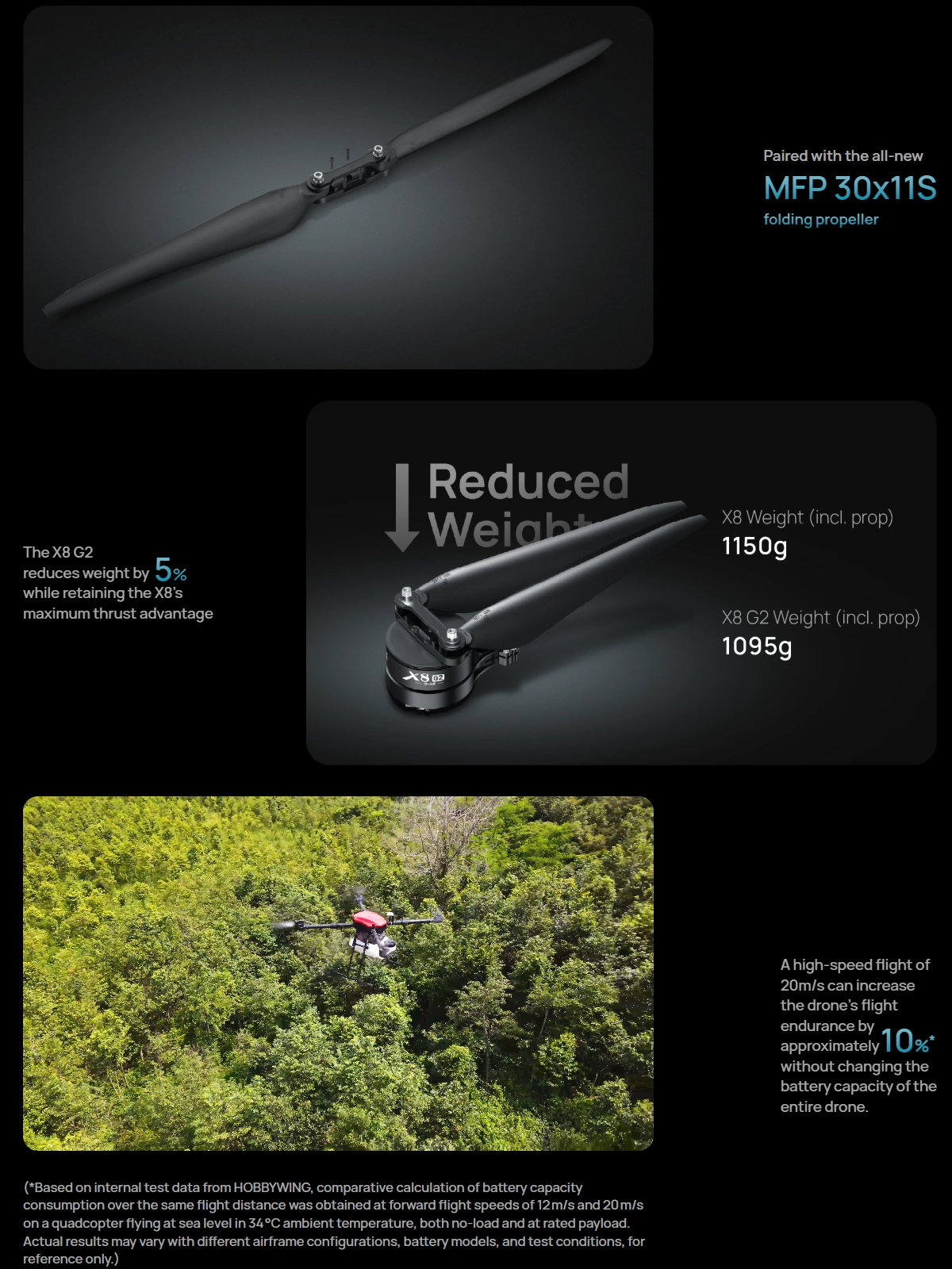 Hobbywing X8 G2 Integrated Drone Propulsion System 5-7.5kg Thrust for Agricultural Drone Axis Multicopter