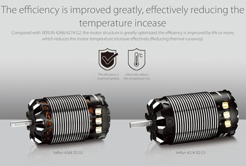 –Compared with XERUN 4268/4274 G2, the motor structure is greatly optimized, the efficiency is improved by 6% or more,which reduces the motor temperature increase effectively (Reducing thermal runaway).