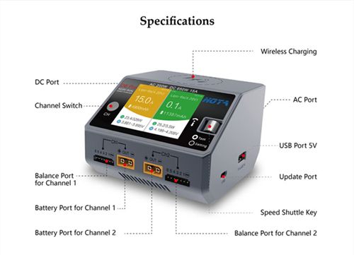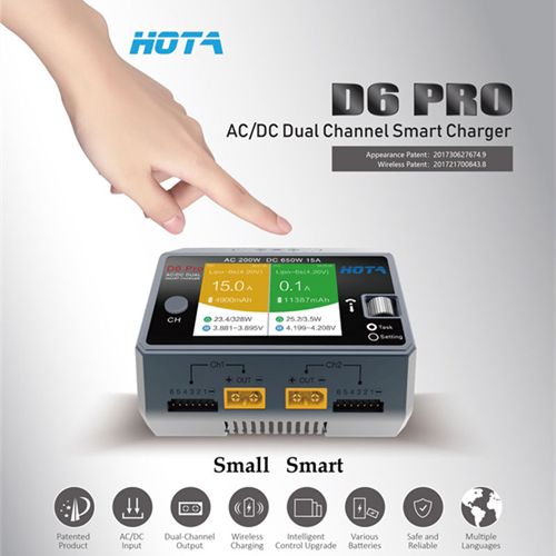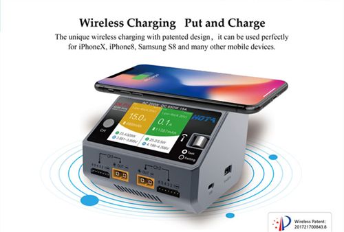 HOTA D6 Pro Dual Channel AC200W DC650W 15A Smart Charger Built-in Mobile Wireless Charger for Lipo LiIon NiMH Battery with iPhone Samsung Wireless Charging