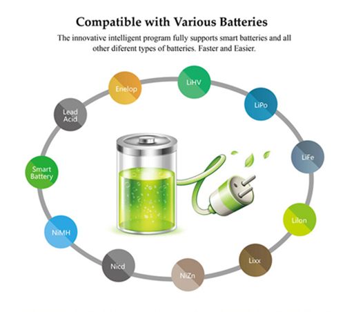Compatible with Various Batteries – The innovative intelligent program fully supports LiHv/LiPo/LiFe/LiIon/Lixx (1~6S)NiZn/Nicd/NiMH(1~16S)Smart Battery (1~6S)Lead Acid(Pb)(2~24V)Enelop(1~16S)