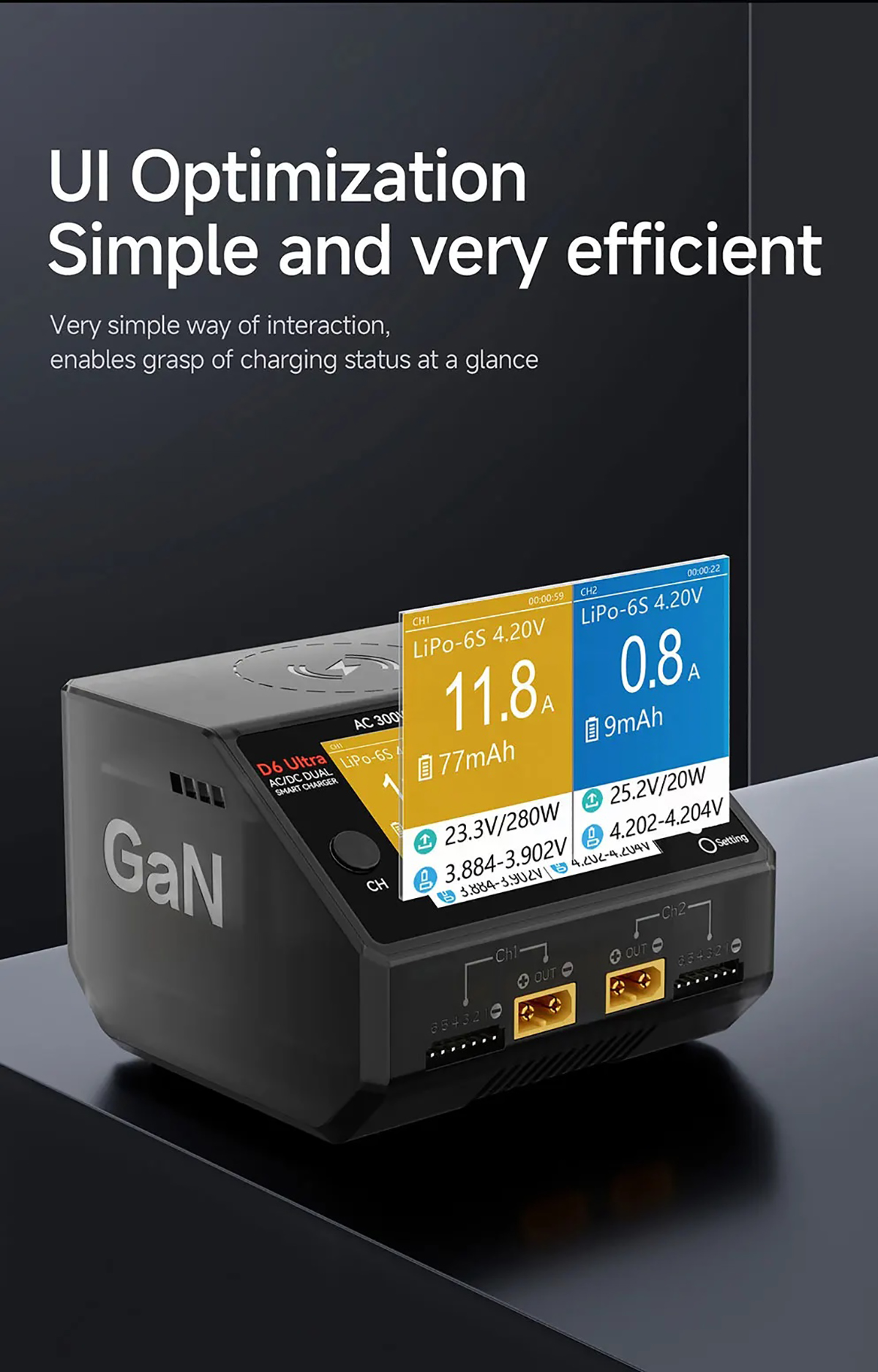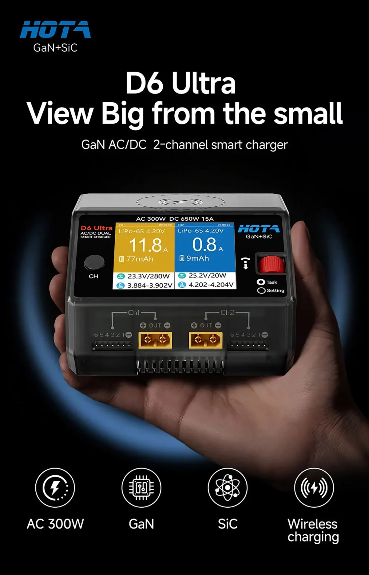 HOTA D6 Ultra Dual Channel Smart Balance Charger 15A AC 300W DC 650W for RC Battery