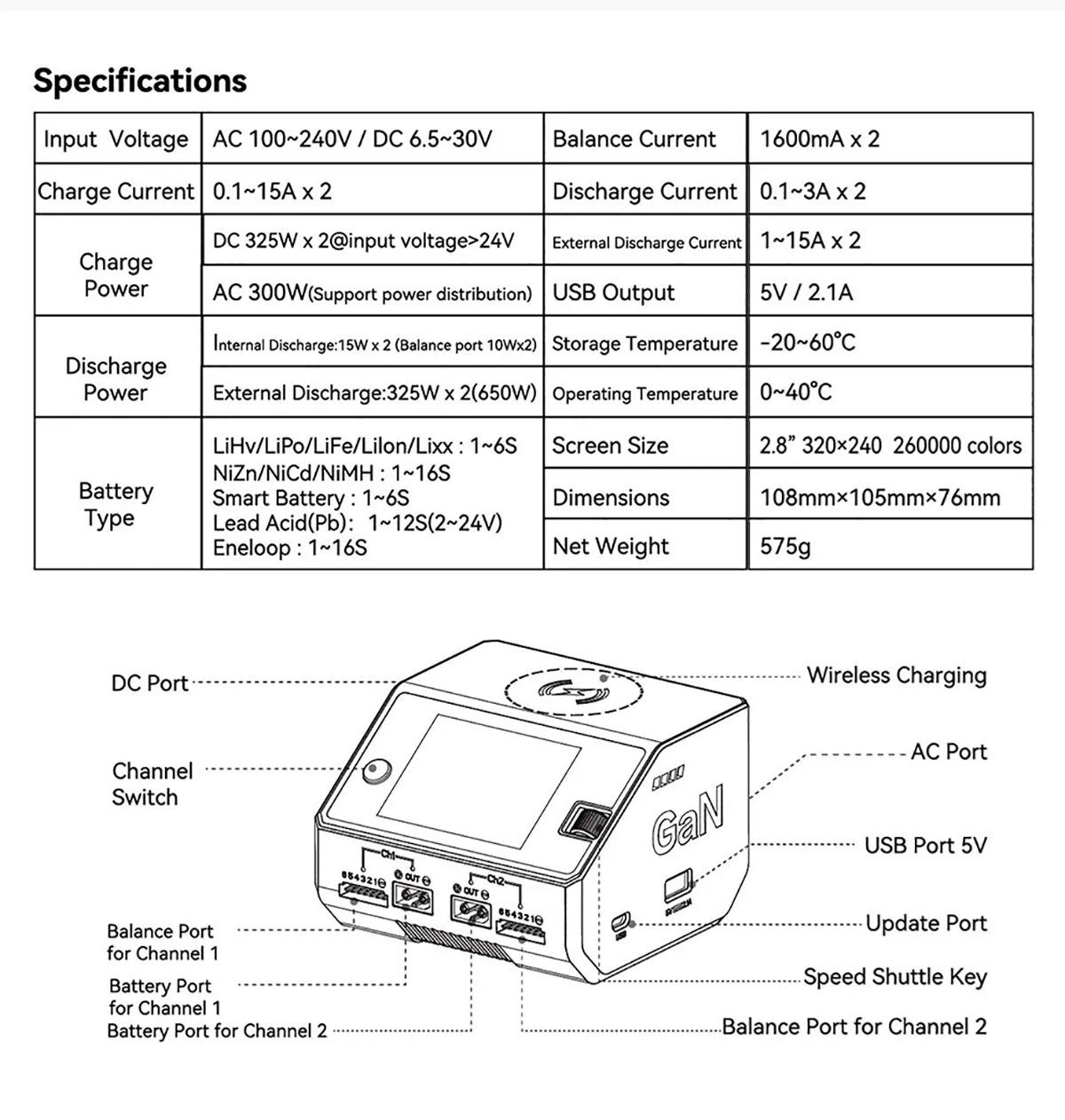 Battery Type: LiHv/LiPo/LiFe/Lilon/Lixx: 1~6S; NiZn/NiCd/NiMH: 1~16S; Smart Battery: 1~6S; Lead Acid(Pb): 1~12S(2~24V); Eneloop: 1~16S