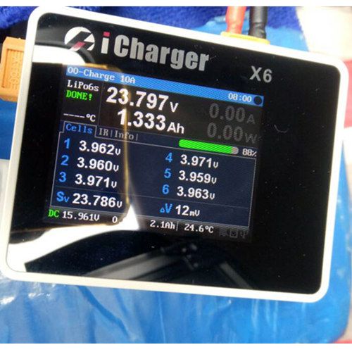 X6 Supports 6s LiPo, Lilo, LiFe, LiHV, LTO and NiZn batteries, with maximum 2A balance current, and adopts a unique balance calculation of internal resistance correction. Supports 1-20s NiMH/NiCd batteries and 1-12s Pb batteries.
