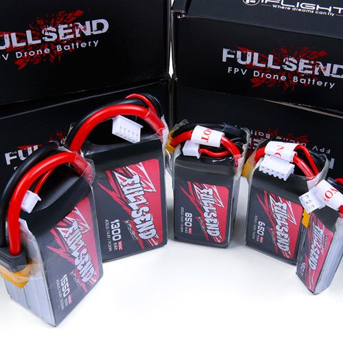 The Fullsend Lipo batteries offer the best bang for your buck! These batteries have an awesome performance with 120C discharge capability and cost a fraction of most other batteries on the market. High-quality cells ensure even delivery of power with minimal voltage sag under heavy loads.