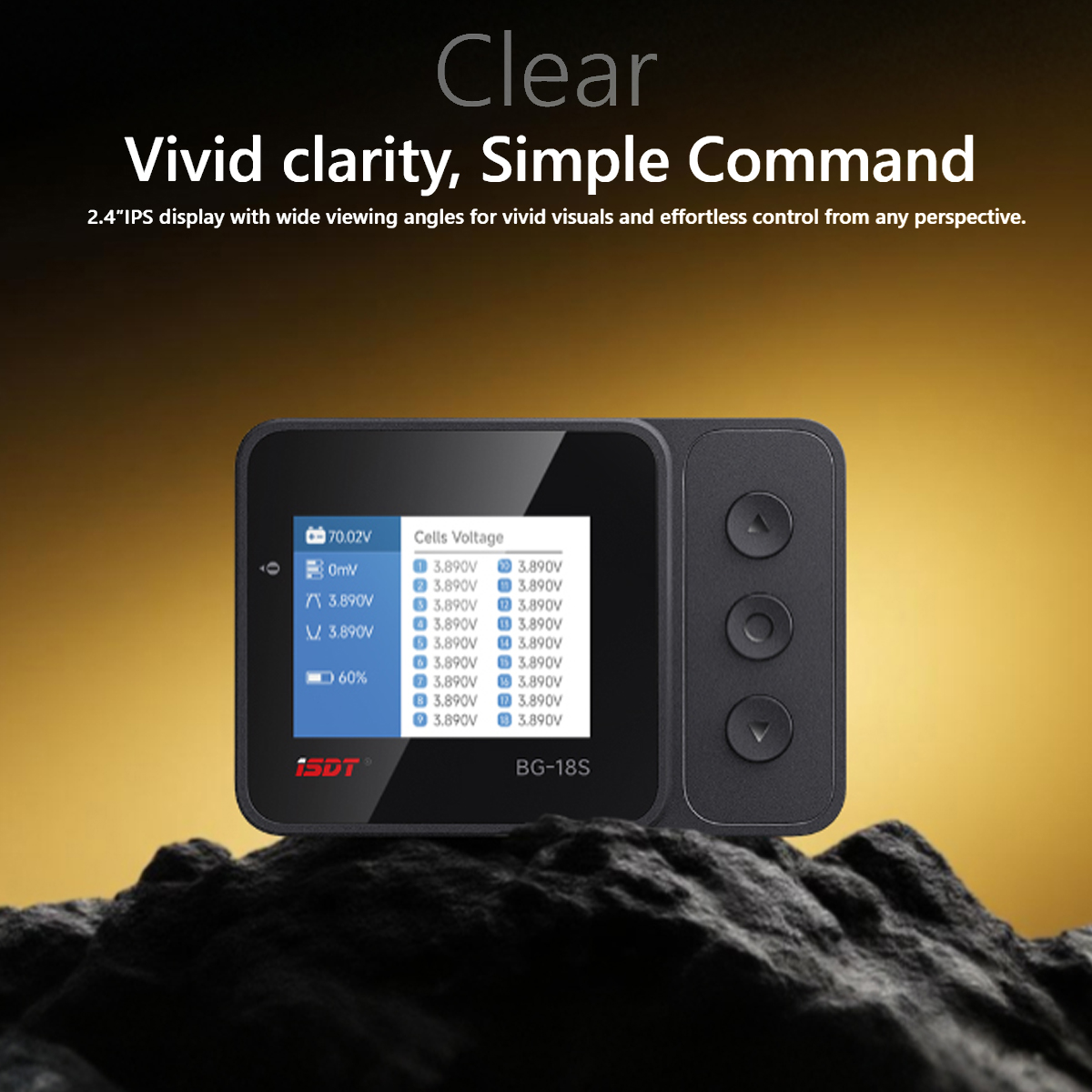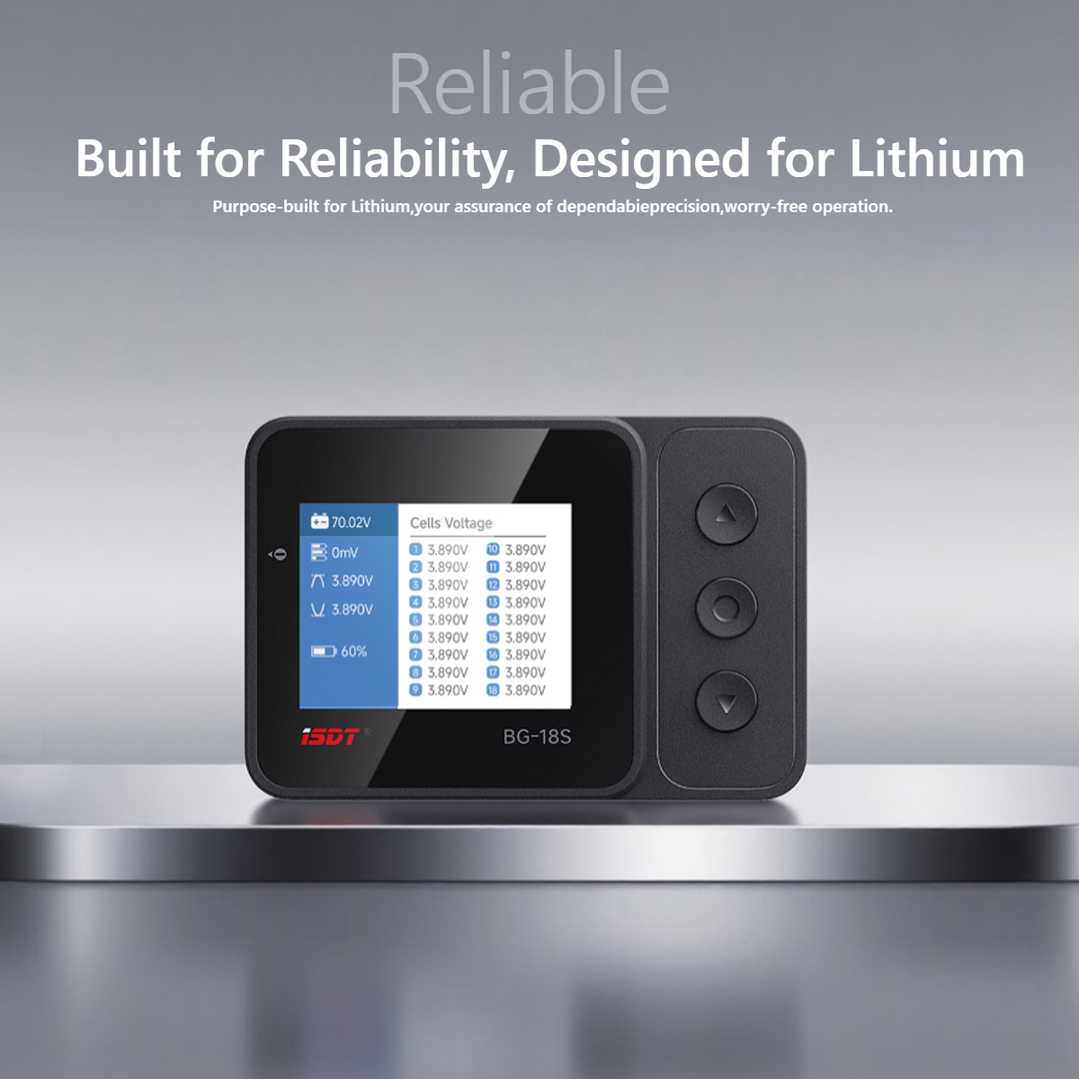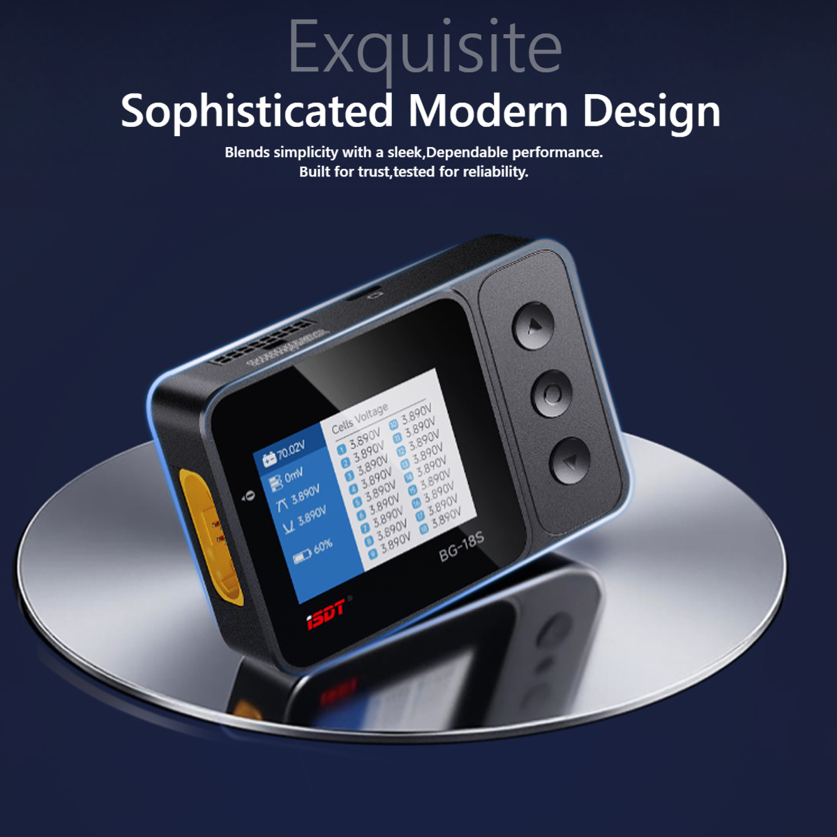 ISDT BG-18S Smart Battery LiPo Checker LCD Display 12-18S Battery Tester for LiFe LiPo LiHv ULiHv Battery