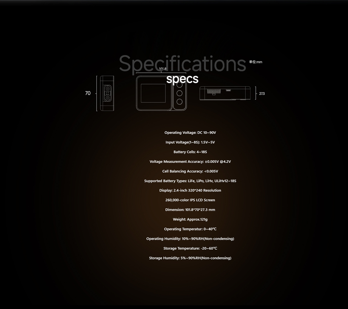 Supported Battery Types: LiFe, LiPo, LiHv, ULiHv12~18S