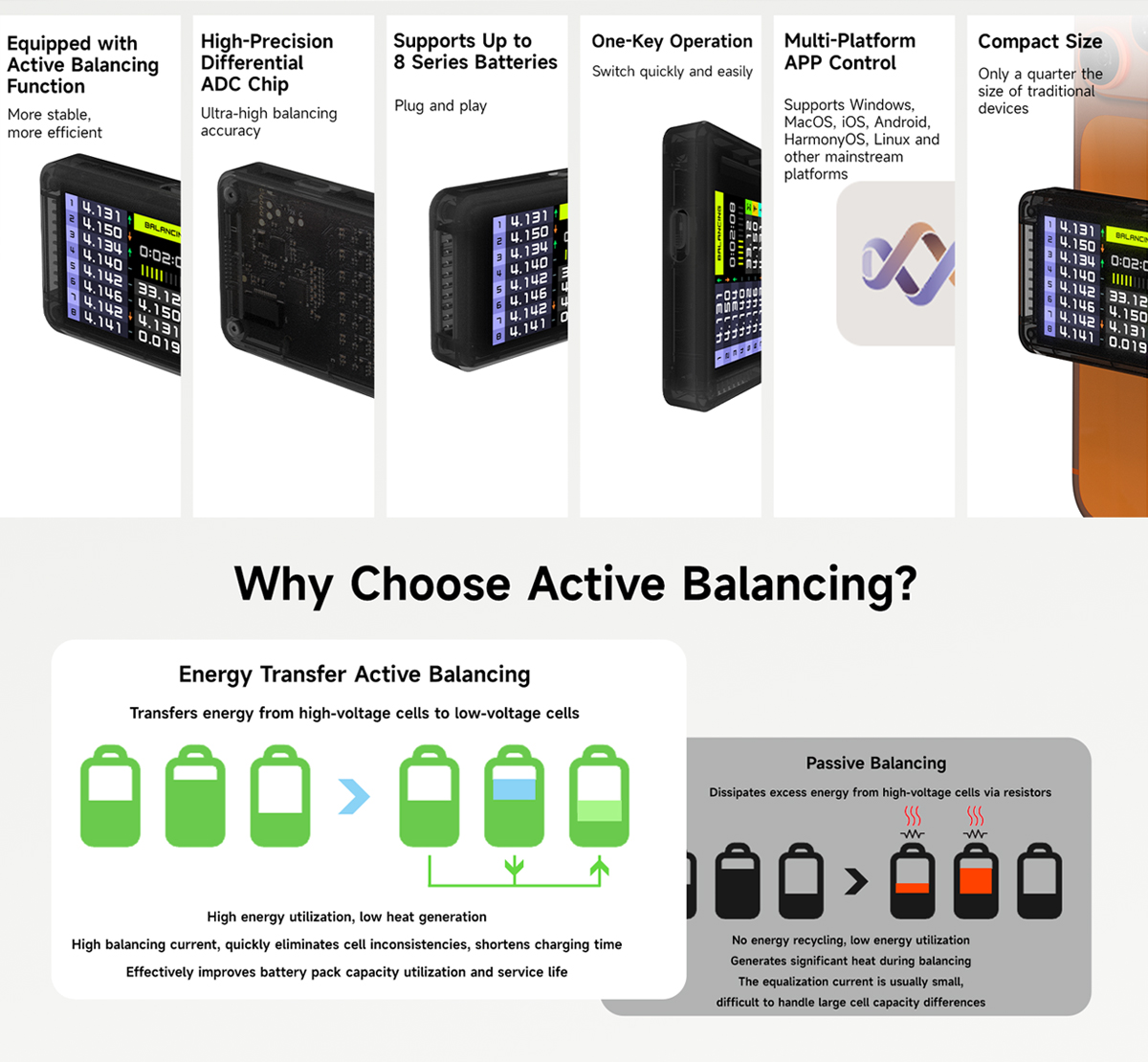 Equipped with Active Balancing Function: More stable, more efficient