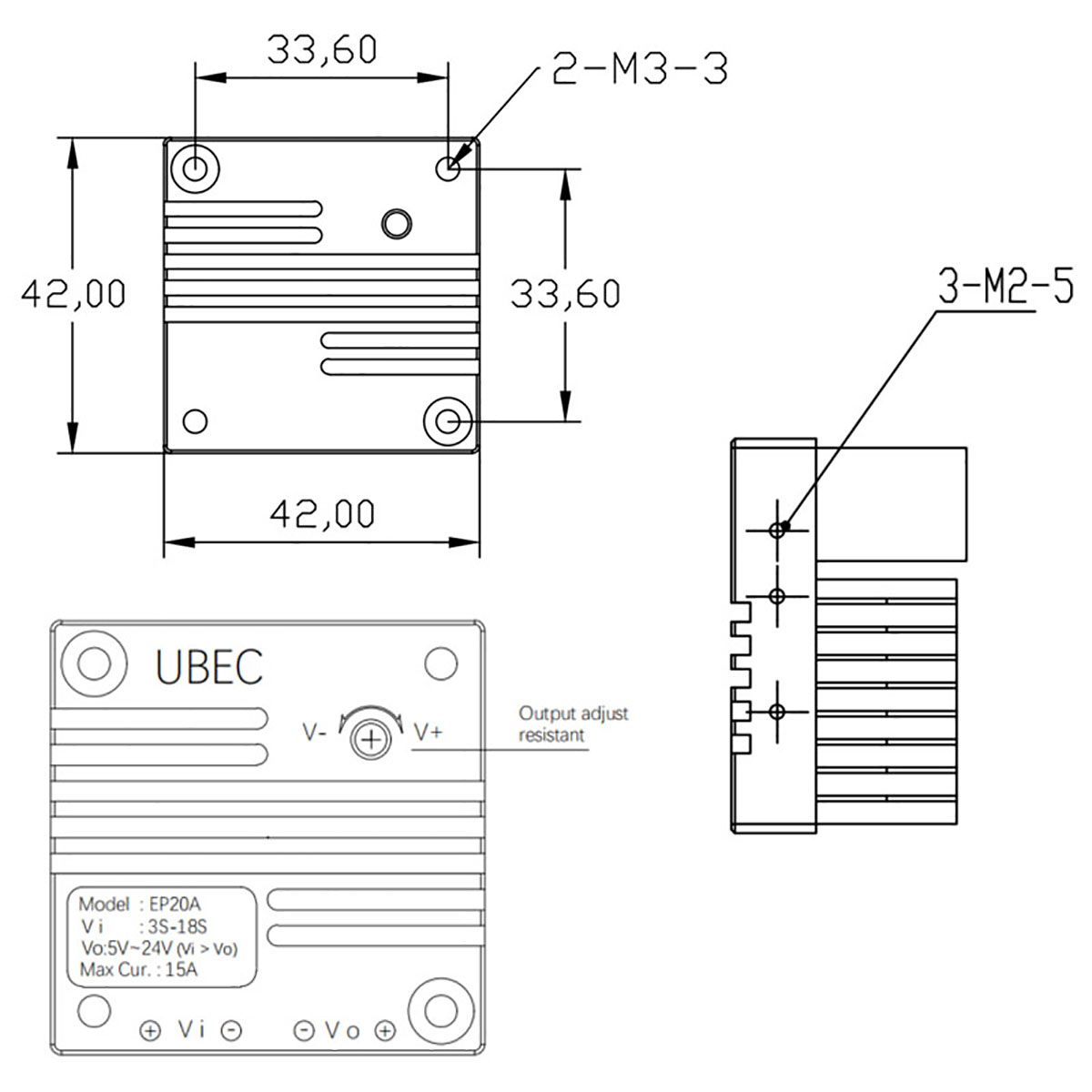 JMRRC EP20A Input 3-18S UBEC DC Power Supply Module 5-24V Output Voltage Regulator Modular for RC Model