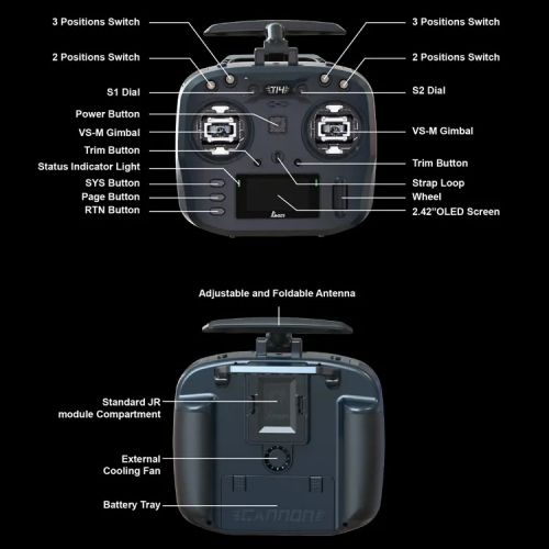 External module interface : standard JR module slot ( JR / FRSKY / Crossfire compatible )