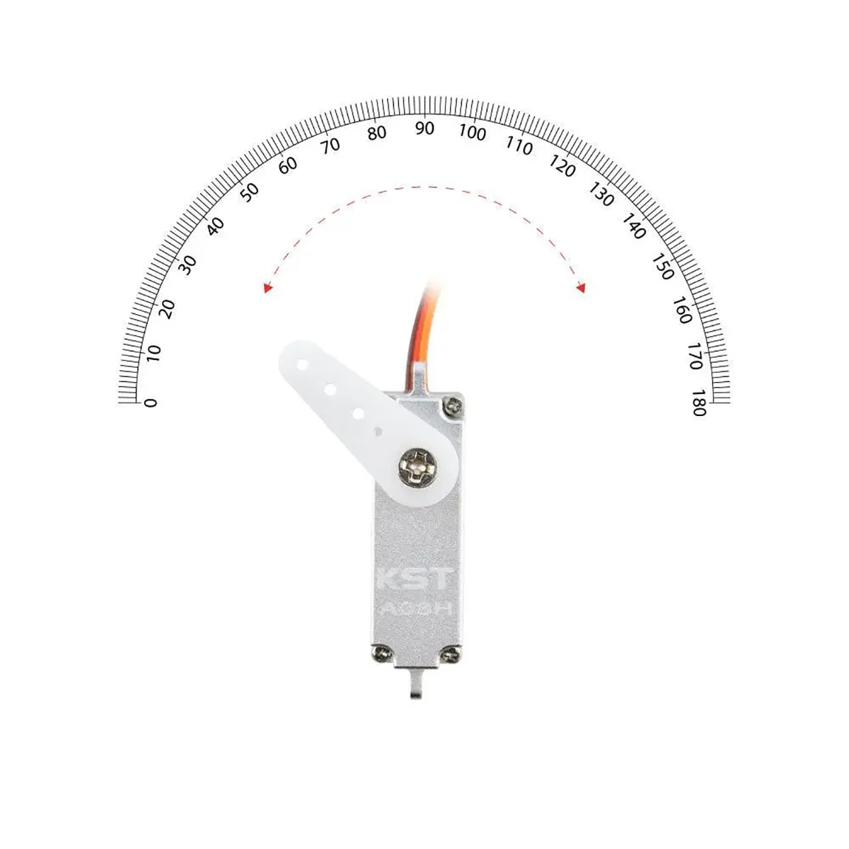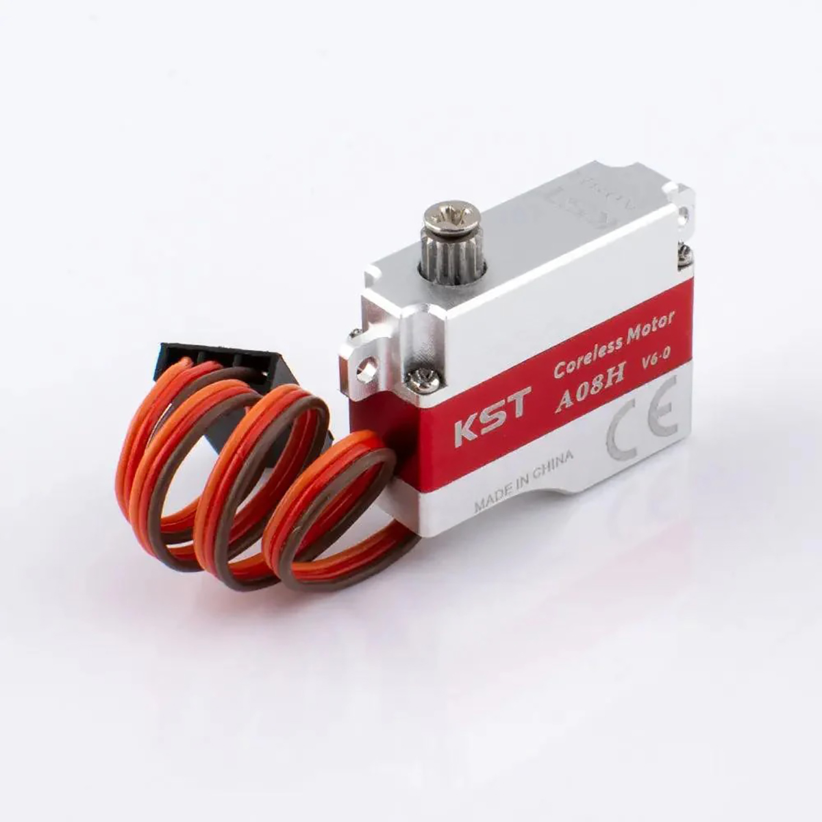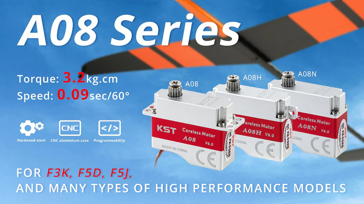 The new KST A08H V6 is the horizontal tab (wing mounting tab) version of the KST A08. It is a great low/medium/high voltage fully metal cased servo weighing only 8g (0.3 oz). Unlike the X08H the A08H incorporates a complete case that covers the motor, making the servos much tougher and less susceptible to water ingress, handling and crash damage. Despite this, the A08H servo is actually lighter and has more torque than the X08H. The A08H is also slightly smaller than the X08H, making it suitable for very tight installations.