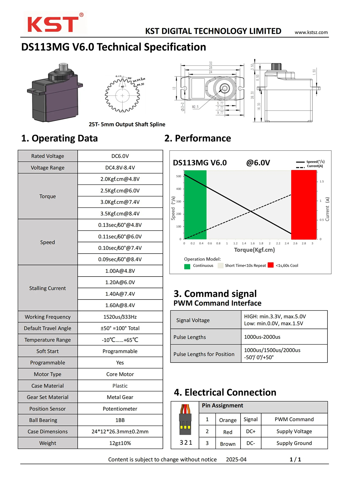 Model: DS113MG V6.0 Digital Metal Gear Servo