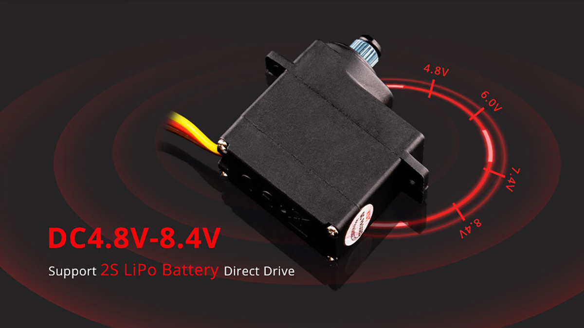 Speed: 0.13sec/60°@4.8V / 0.11sec/60°@6.0V / 0.10sec/60°@7.4V / 0.09sec/60°@8.4V
