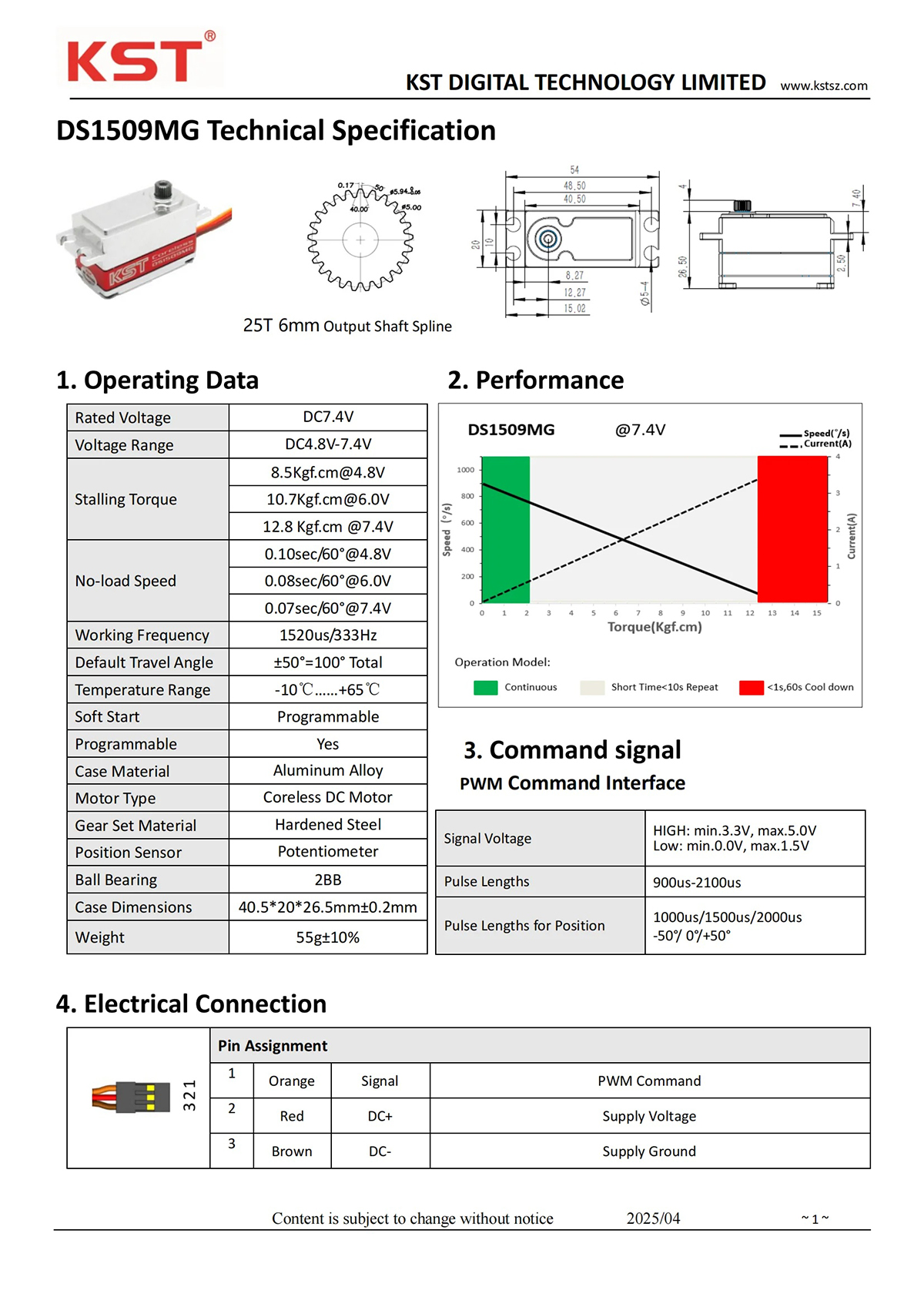 DS1509MG low profile digital Servo, featured with 12.8Kgf.cm high torque and 0.07sec fast positioning speed. It is a great choice of steering servo for RC cars and aircraft models. It offers a wide voltage range of 4.8 – 7.4 Volt and is therefore universally applicable due to the low profile construction.