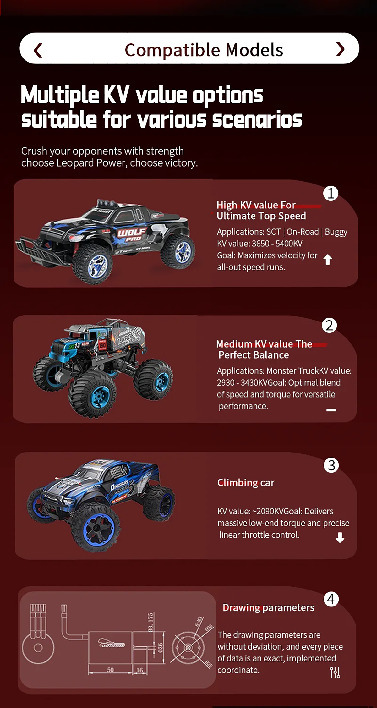 Leopard Hobby LBP3650 3650KV 3900KV 4450KV Brushless Motor for 1/10 RC Racing Car Short Course Truck