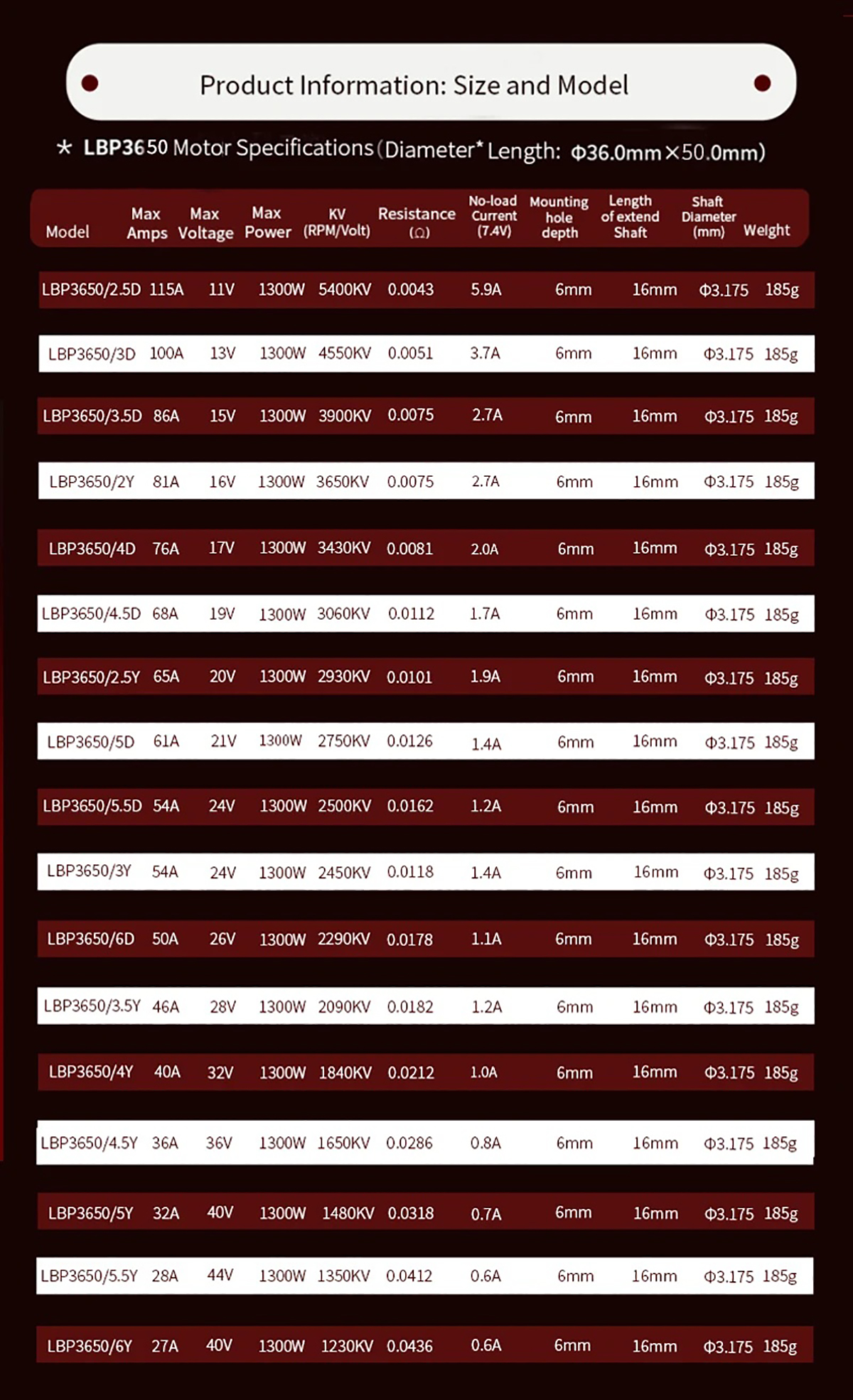 Leopard Hobby LBP3650 Brushless Motor x1