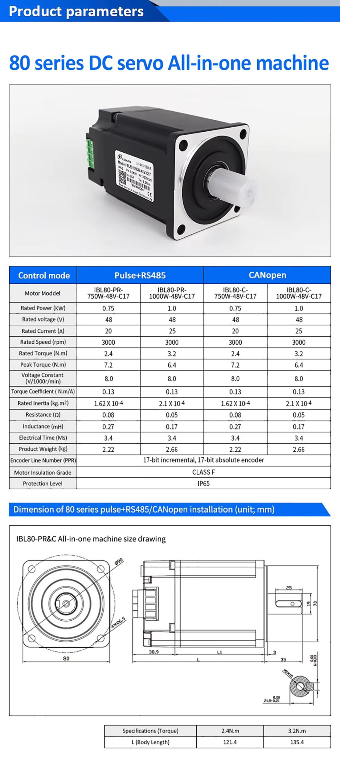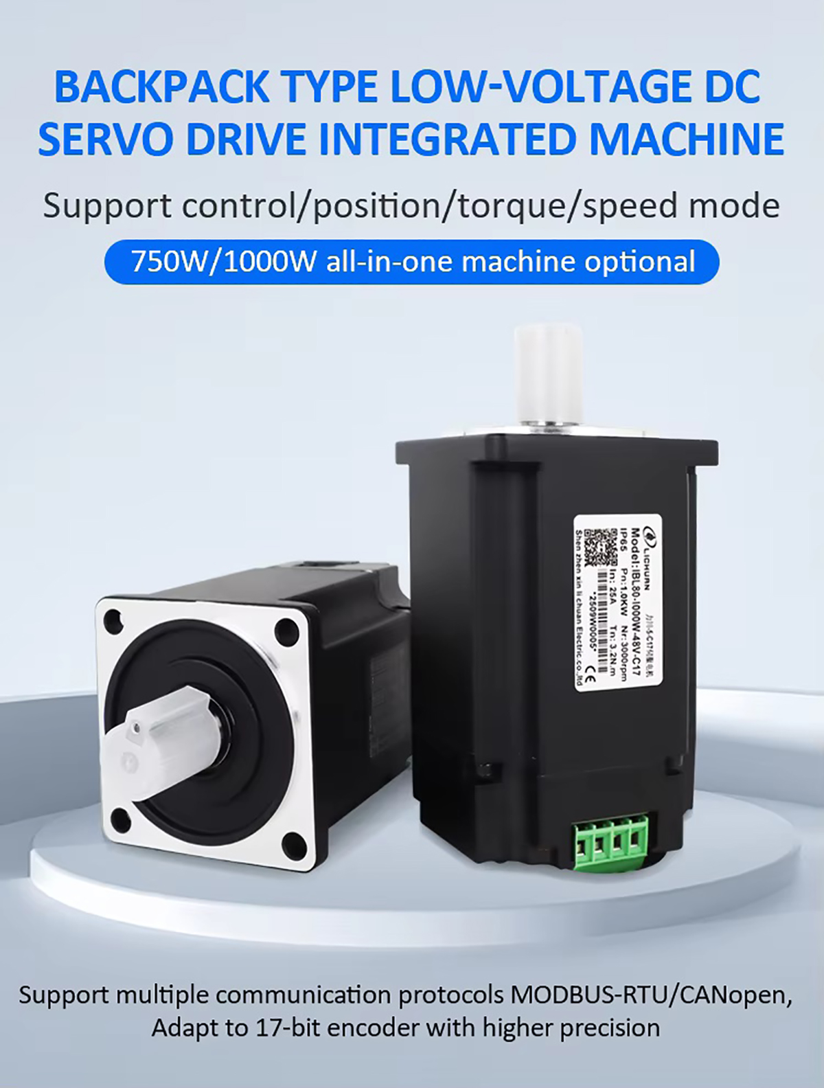Lichuan IBL80C-750W-48V-C17 80 Backpack Type Integrated Servo Motor CANopen 2.4Nm 48V 750W for Industrial Robot