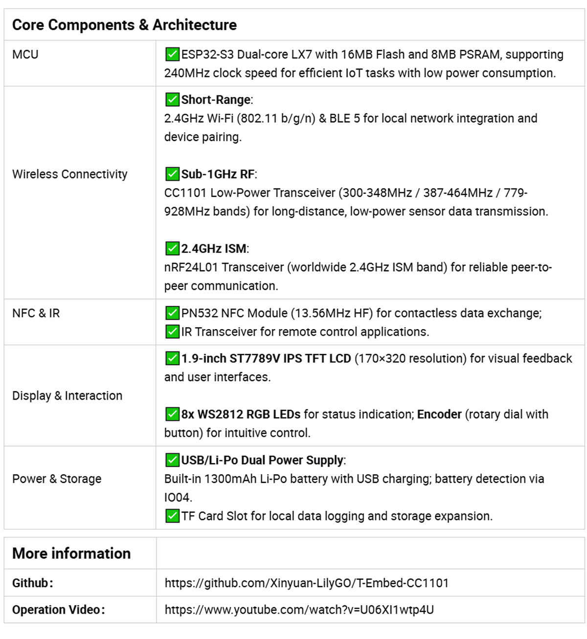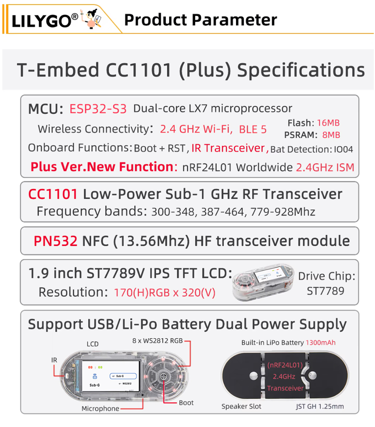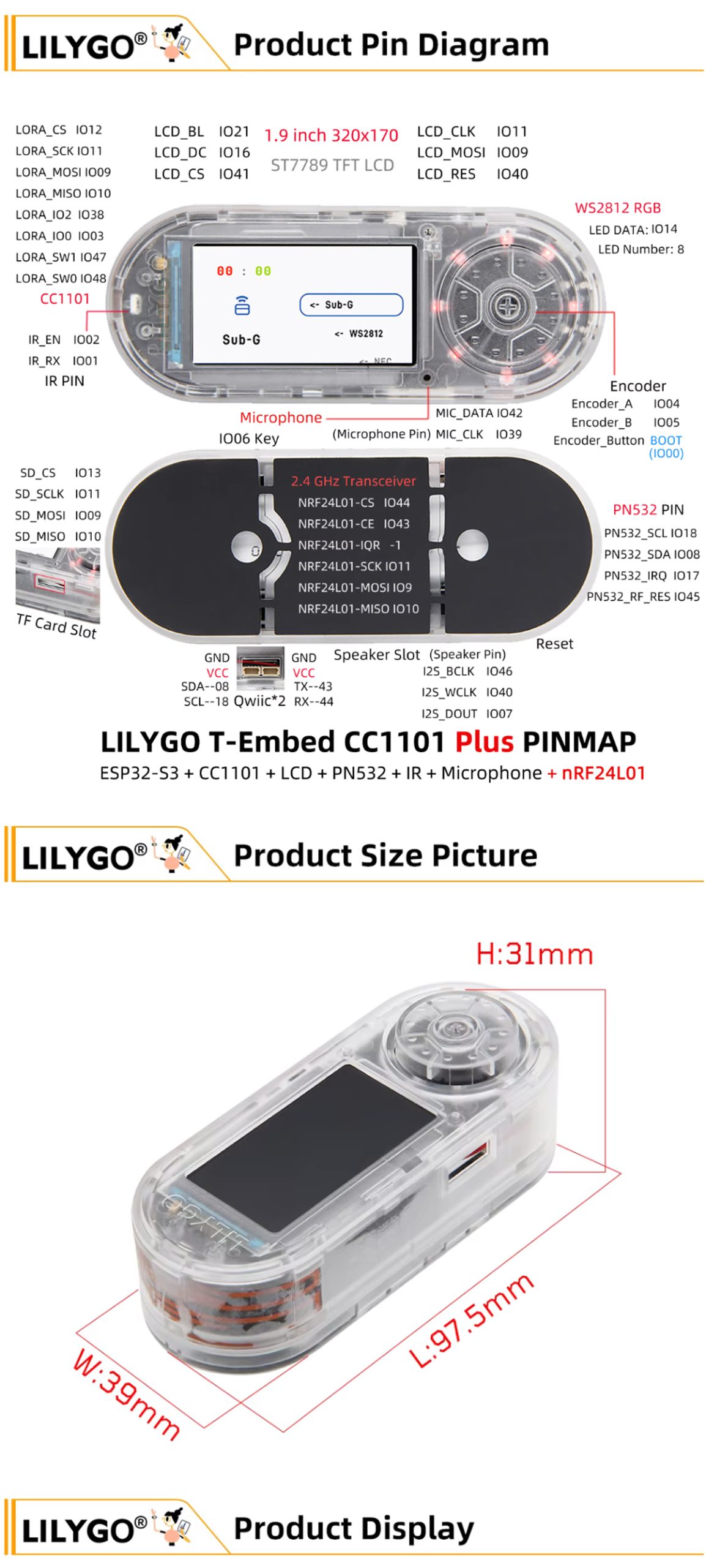 LILYGO T-Embed CC1101 Plus is a feature-packed, all-in-one IoT development console designed for building advanced wireless communication systems, smart home controllers, and portable monitoring devices. Powered by the ESP32-S3 dual-core microprocessor and integrated with multi-band RF transceivers, NFC, infrared, and a vibrant IPS LCD, this device combines long-range connectivity, interactive control, and rich expandability for professional developers and tech enthusiasts.