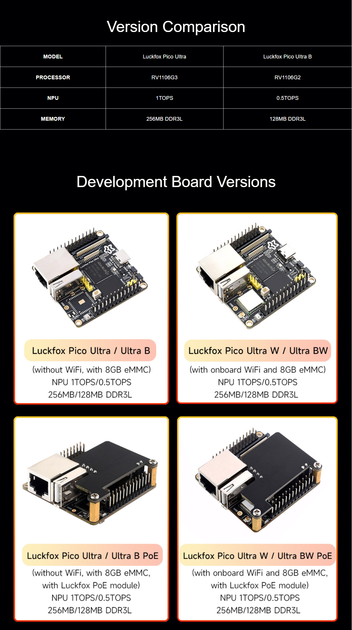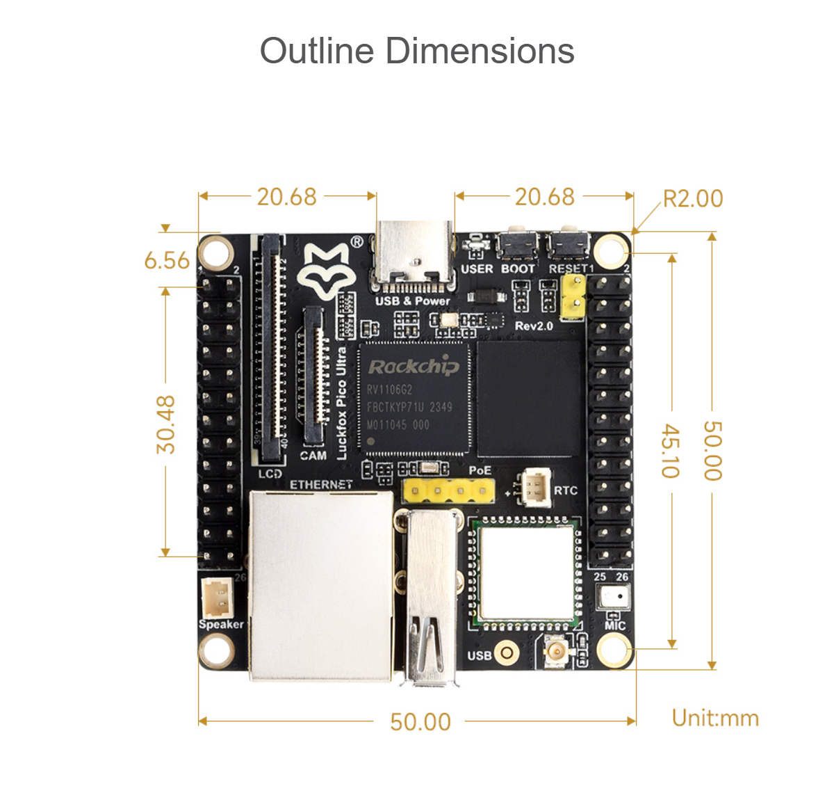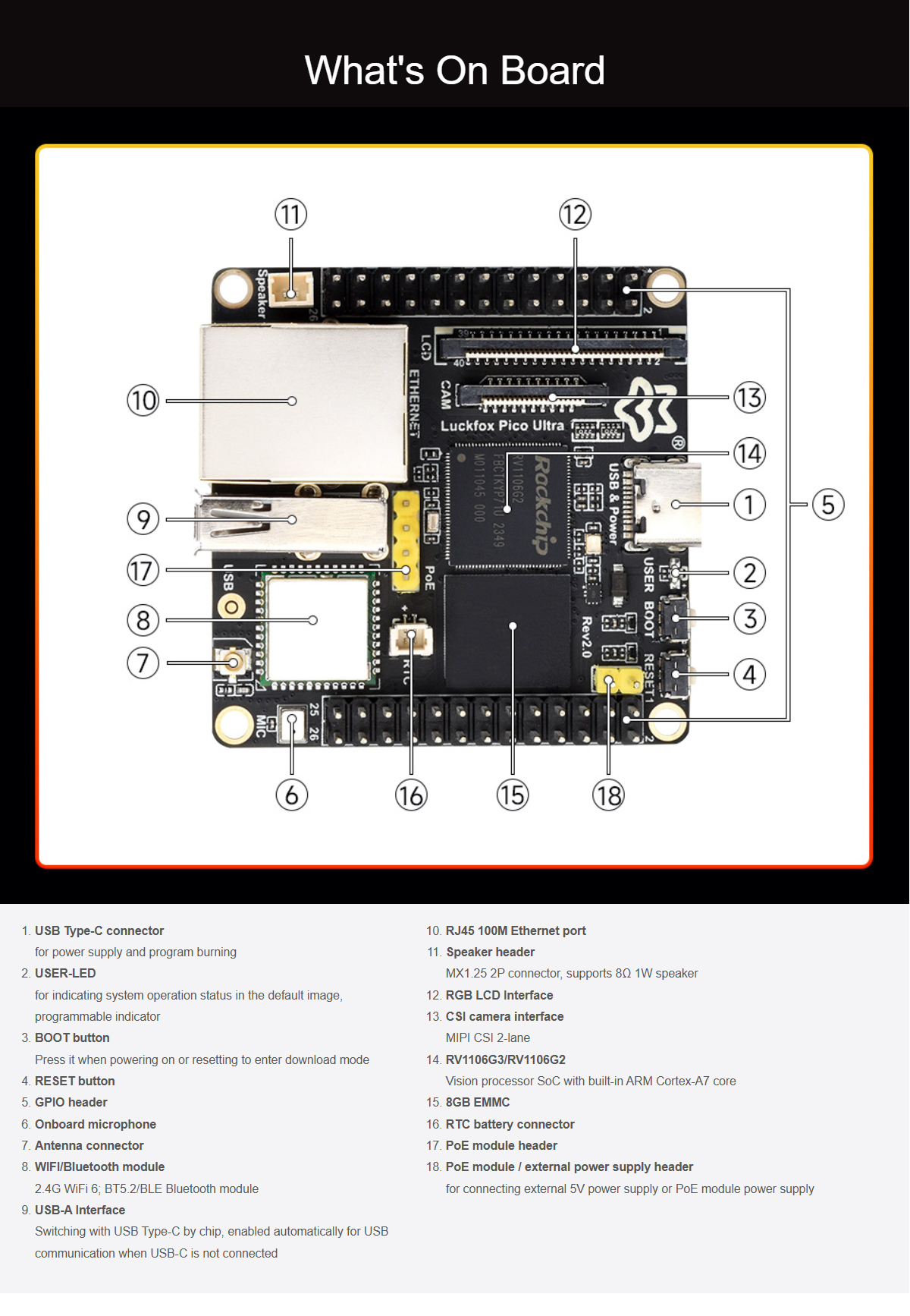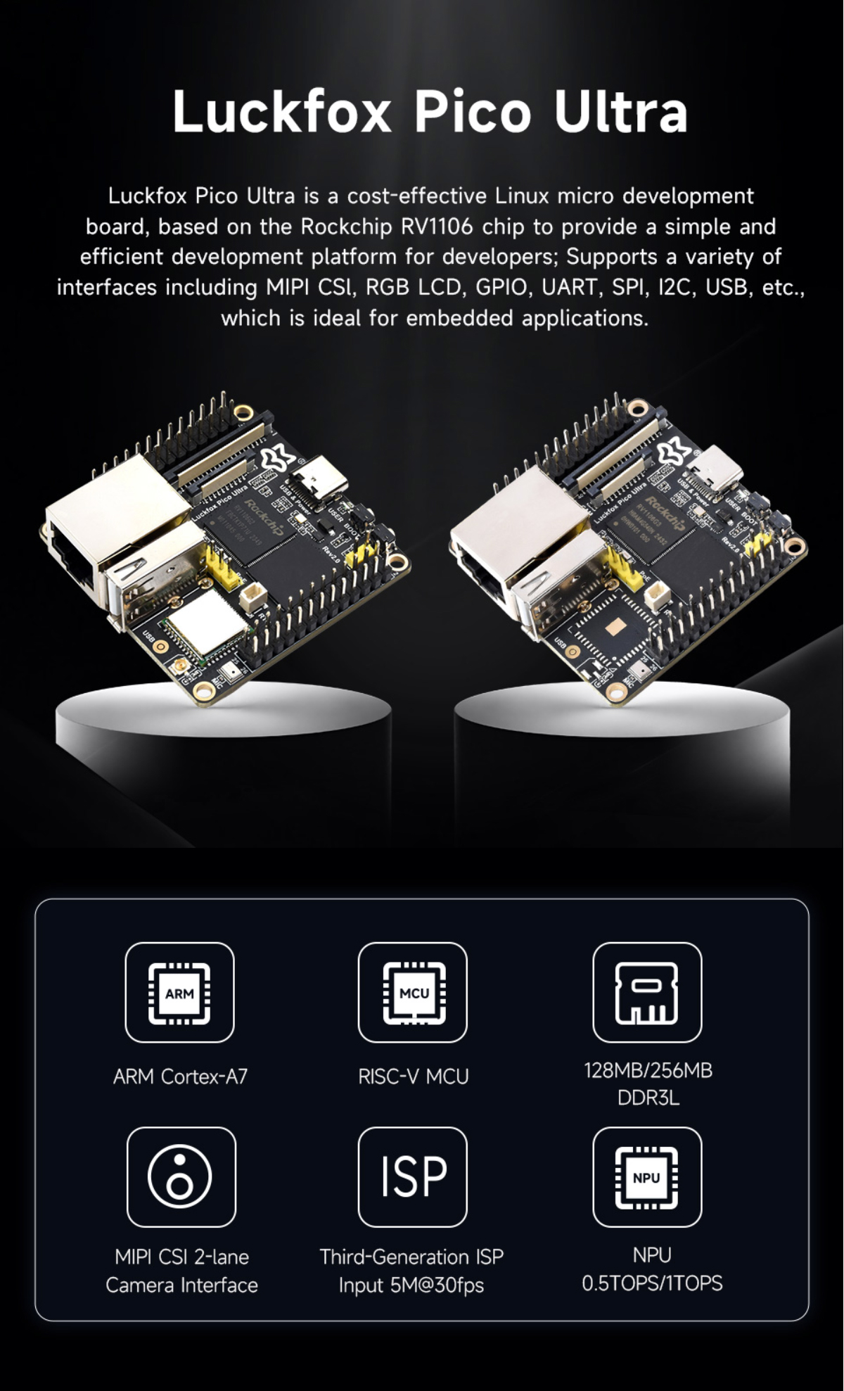 Luckfox Pico Ultra RV1106 Linux Micro Development Board Variety Interfaces ARM Cortex-A7 without Wireless PoE Module