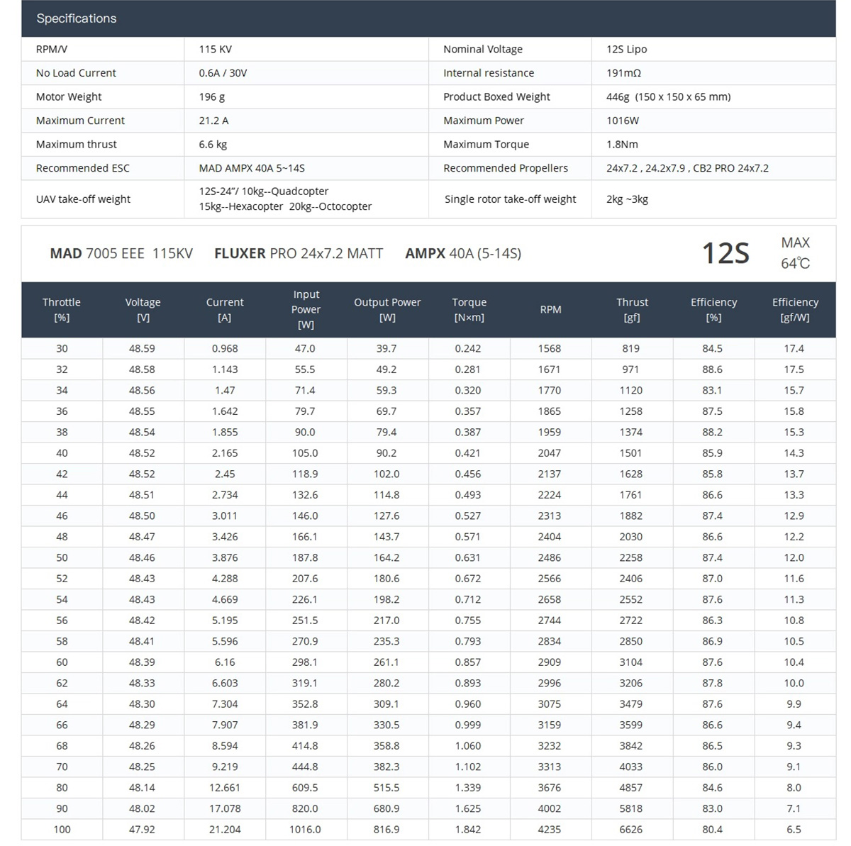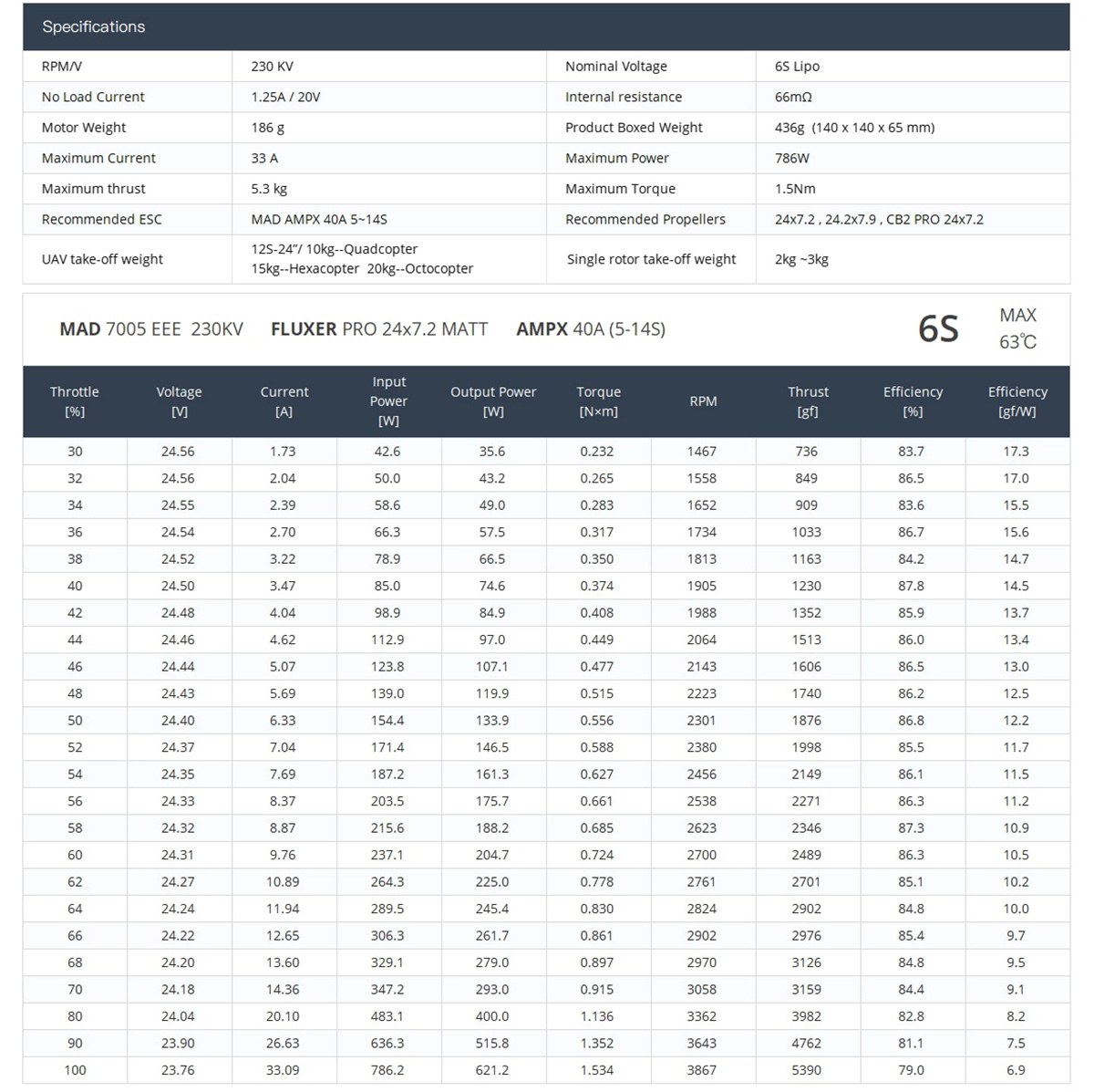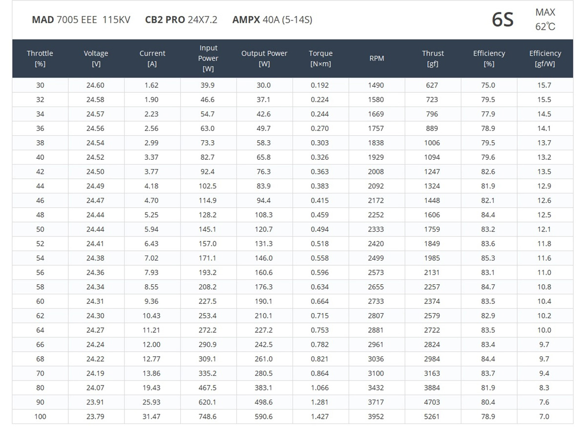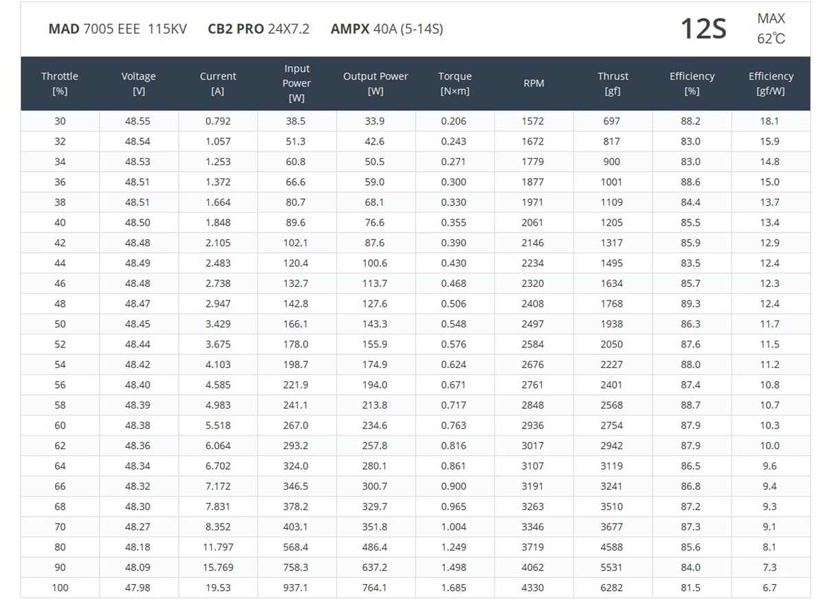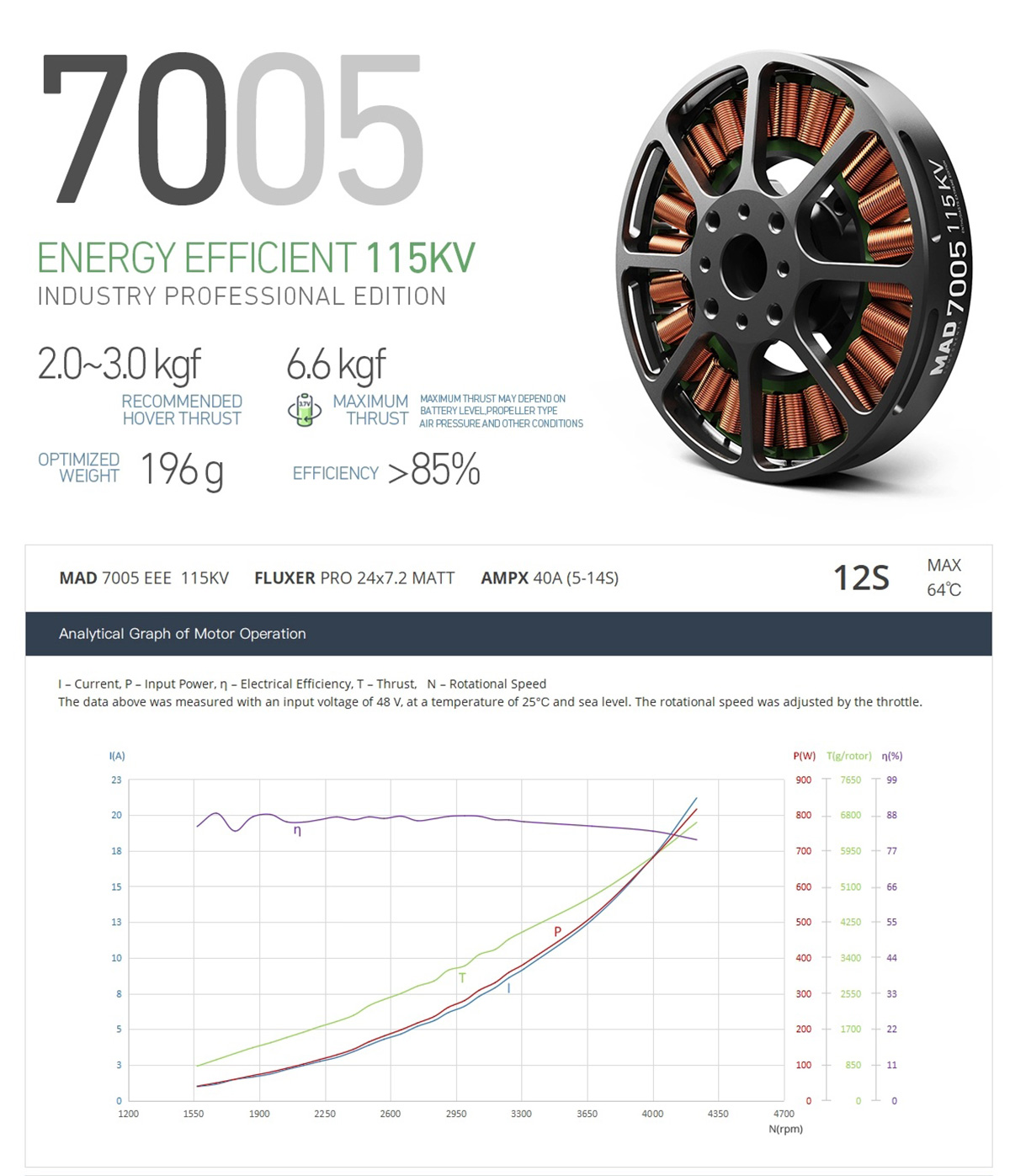 Optimized for mapping/logistics drones | Industry-leading 14.3g/W efficiency with 24″ props