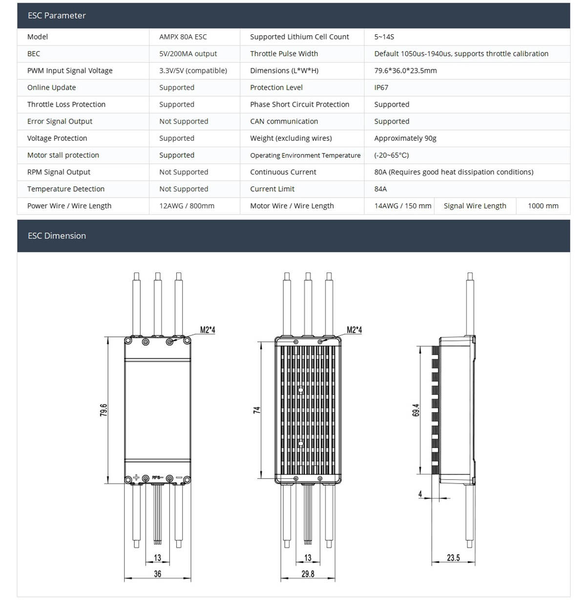 Model: AMPX 80A ESC