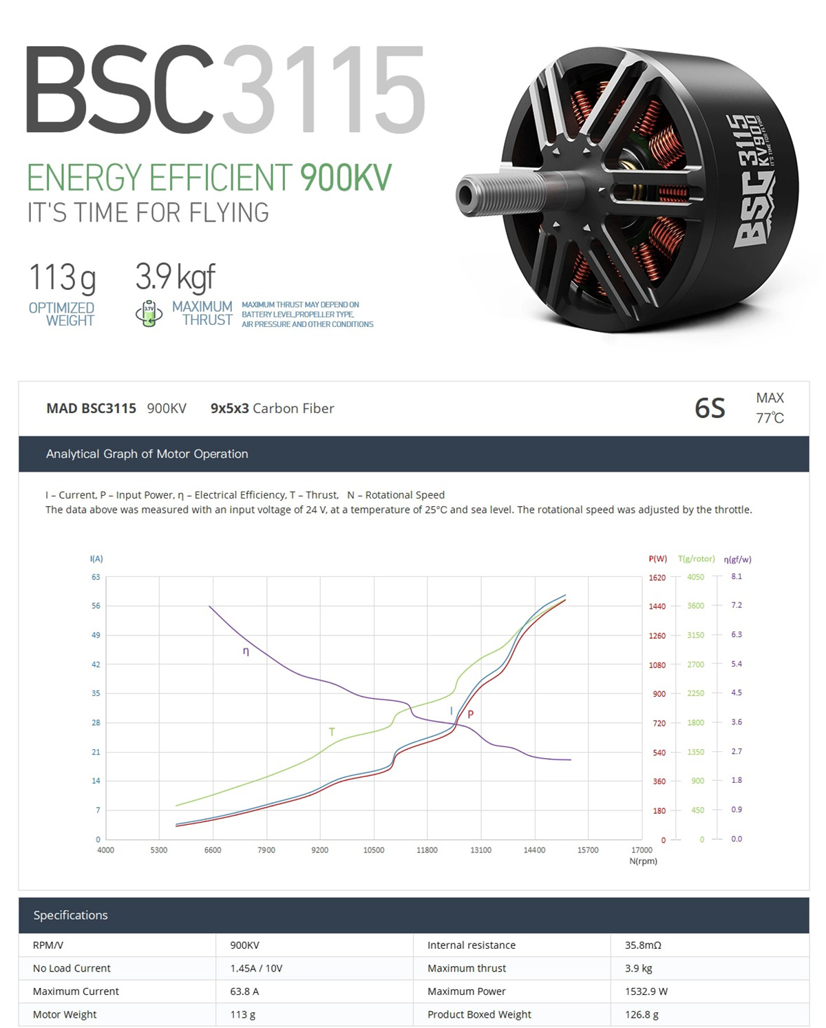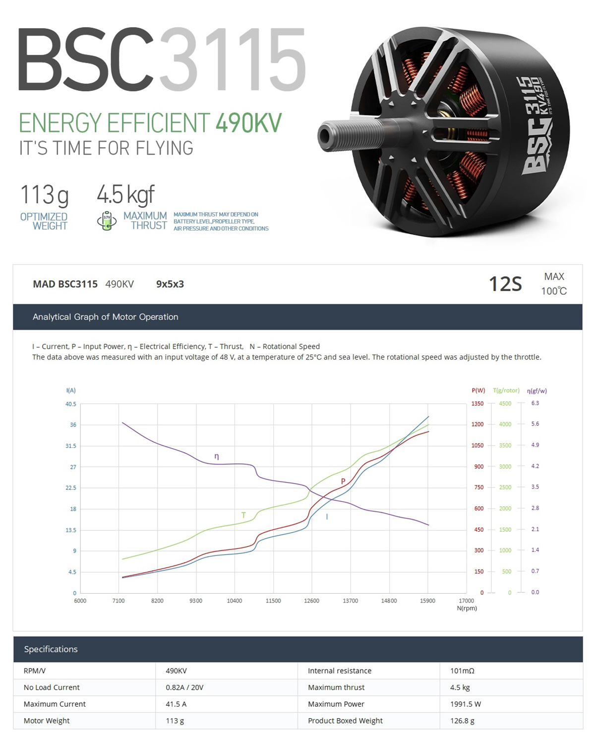 MAD BSC 3115 490KV 900KV 1050KV Brushless Motor for 9-10inch Long Range FPV Drone