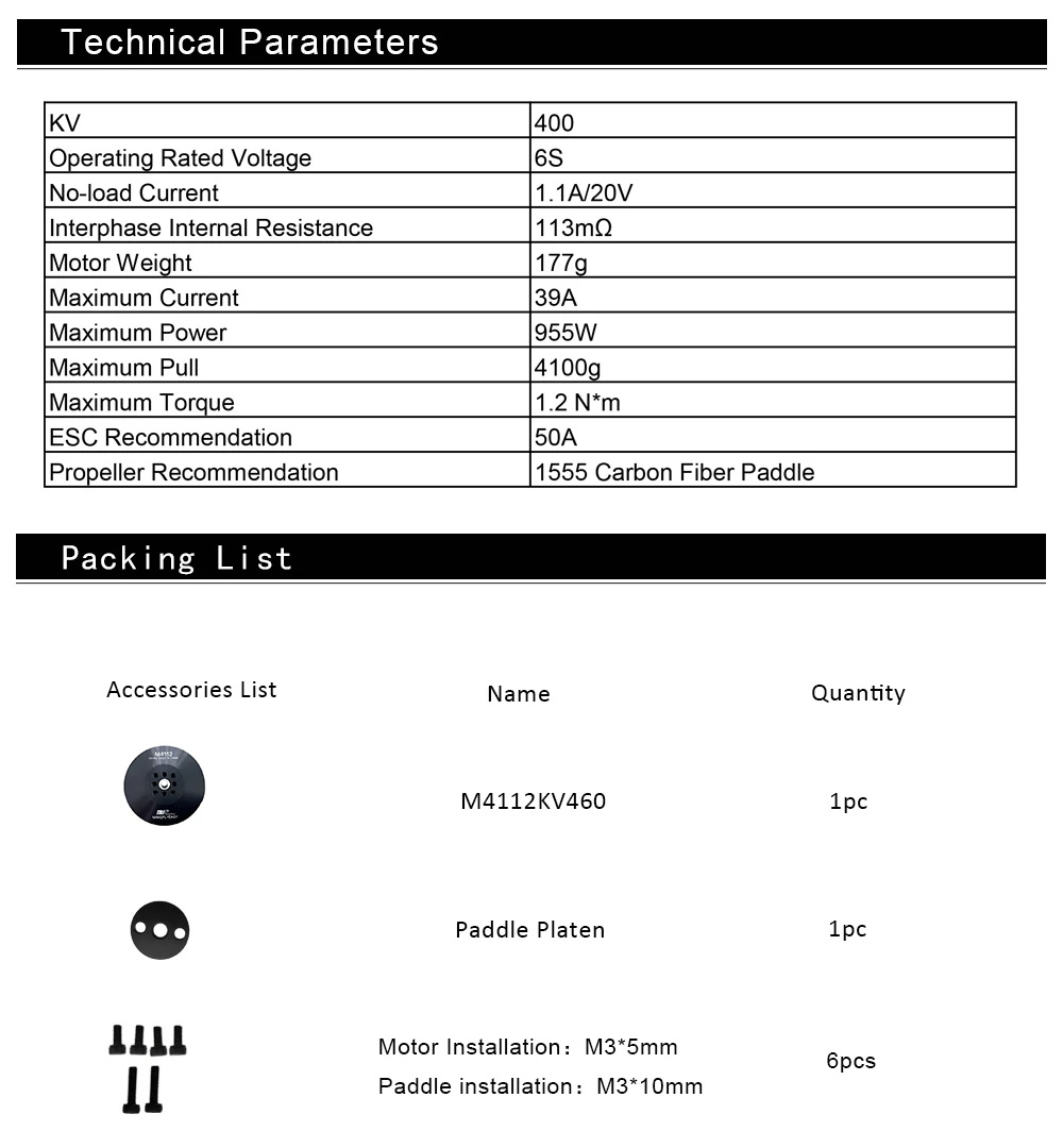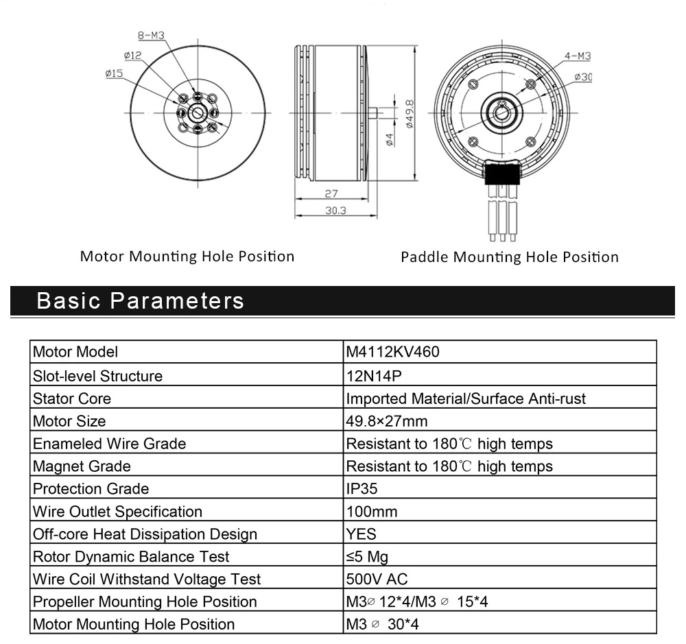Propeller Mounting Hole Position:M3⊙12*4/M3⊙15*4