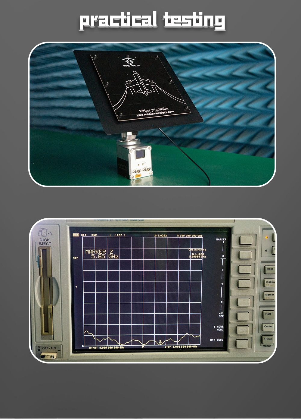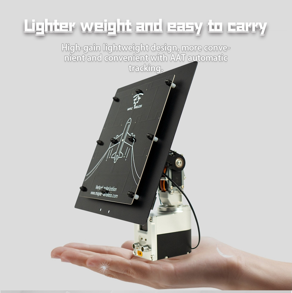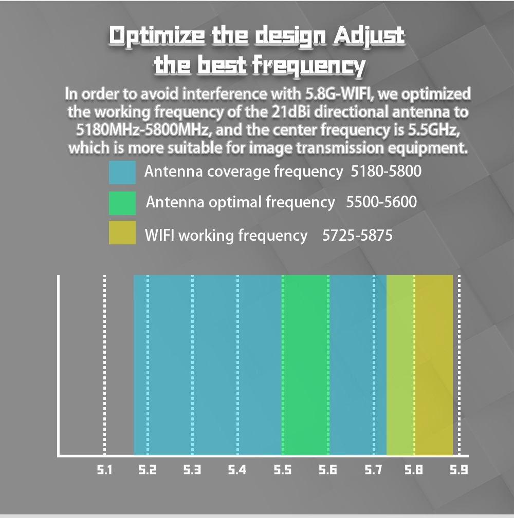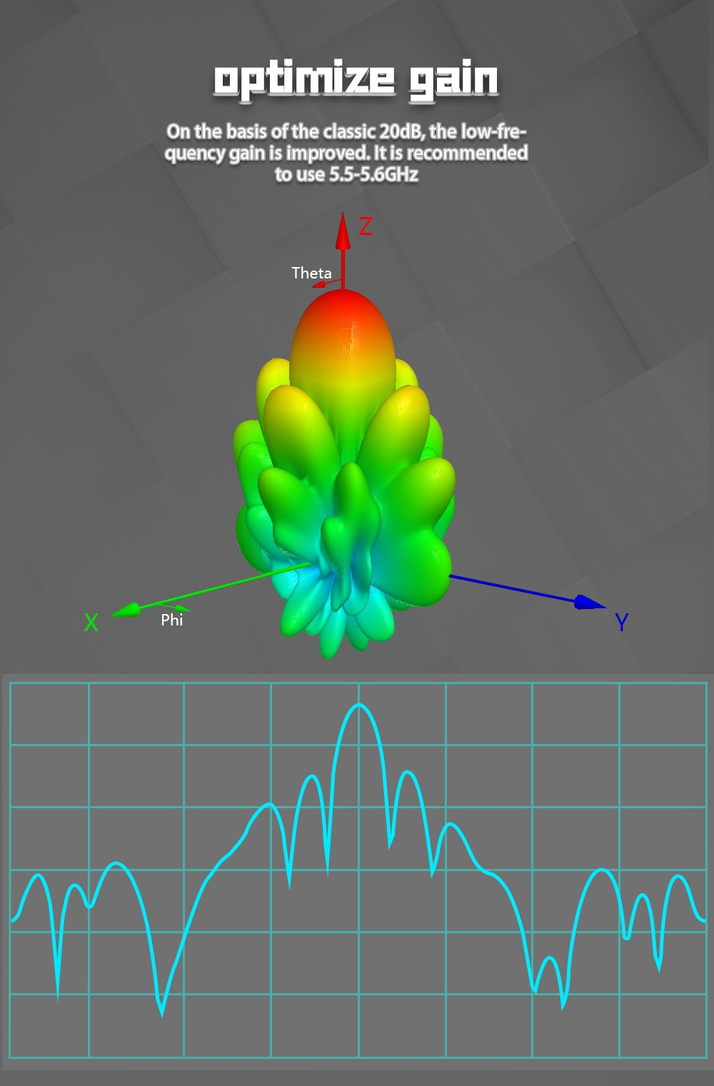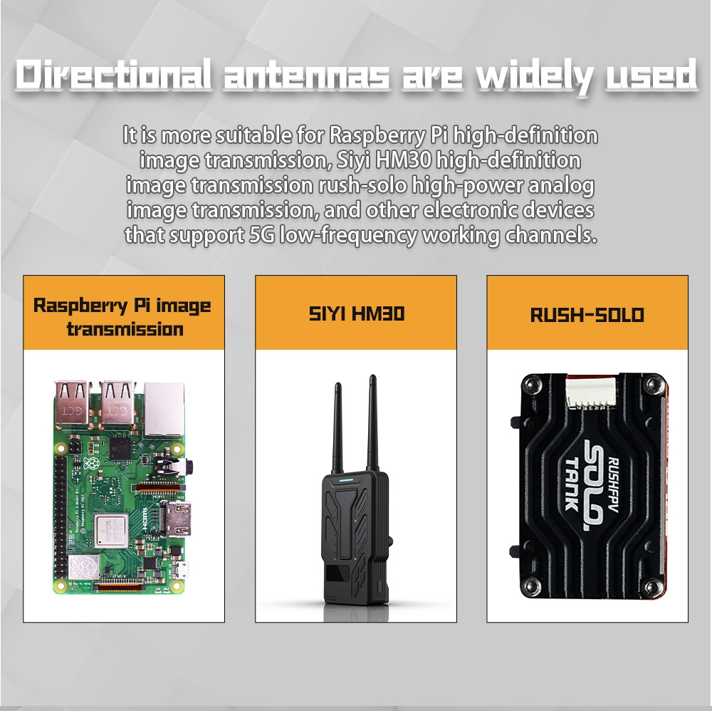 This product is based on the last generation of classic 20dB long distance antenna, optimized design. Adjust the best working frequency, optimize the gain, adopt a new spray appearance. It is more suitable for RASPberry PI HD picture transmission, SIqi HM30 HD picture transmission, Rush-SOLO high power analog picture transmission, and other electronic devices that support 5G low frequency working channel, avoiding WIFI interference frequency. High gain lightweight design, with AAT automatic tracking more convenient. High hardness aviation aluminum do reflection plate, low loss teflon high-frequency plate do radiation source, reduce the cost on the basis of not sacrificing performance, even in 5G low band performance than the classic 20dB better. Operating frequency: 5180-5850mhz, best operating frequency 5500-5600mhz