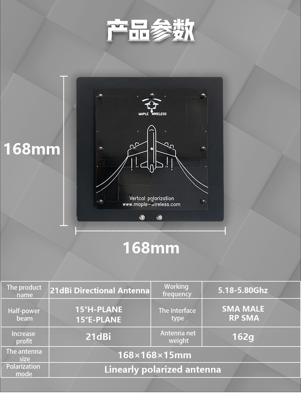 Maple Wireless 5.5G-21dBi Directional Antenna High-gain Light Weight for for Raspberry Pi /Siyi HM30 Transmission Inner Hole