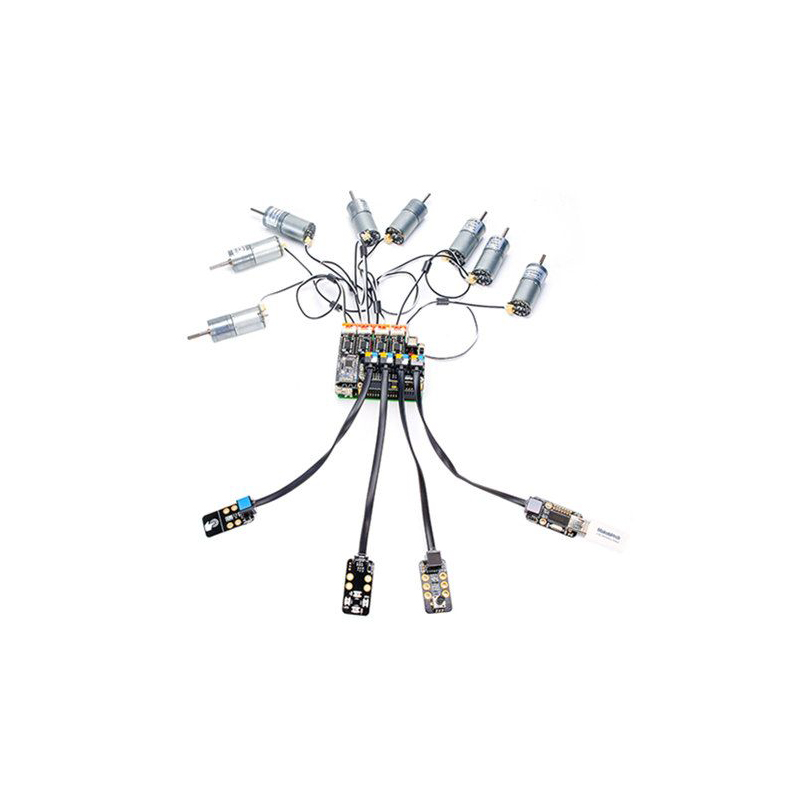 4 motor drive interface, can be convenient to insert the coding motor drive module, stepper motor drive module, so as to achieve the drive DC motor, the coding motor, stepper motor .
