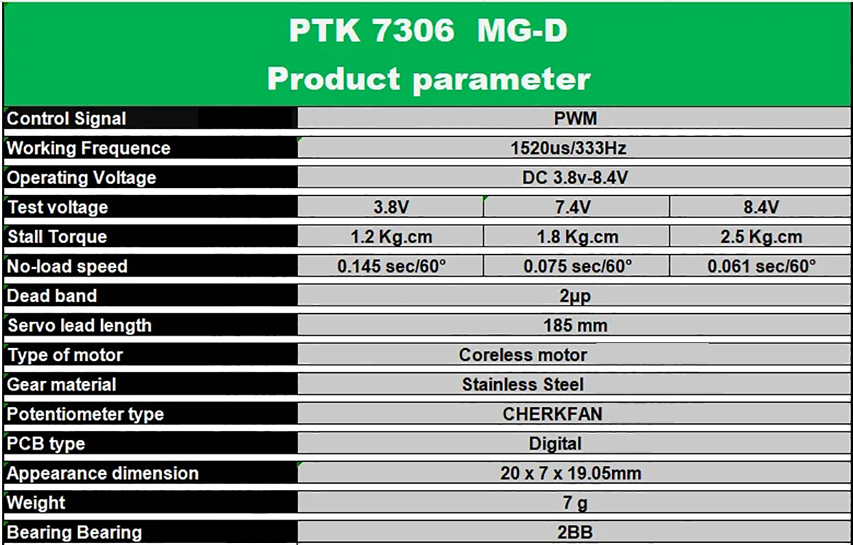 PTK 7306 MG-D 7g All Metal Coreless Motor Digital Servo for F5L F3D Glider Fixed Wing RC Model Accessories