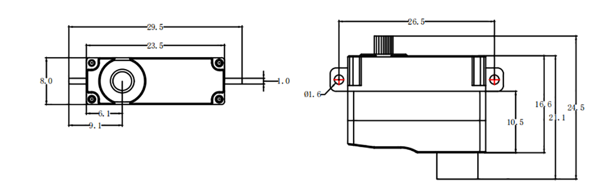 Speed/Stall Torque@ 6.0V: 0.083 sec / 60° 3.0 Kg.cm