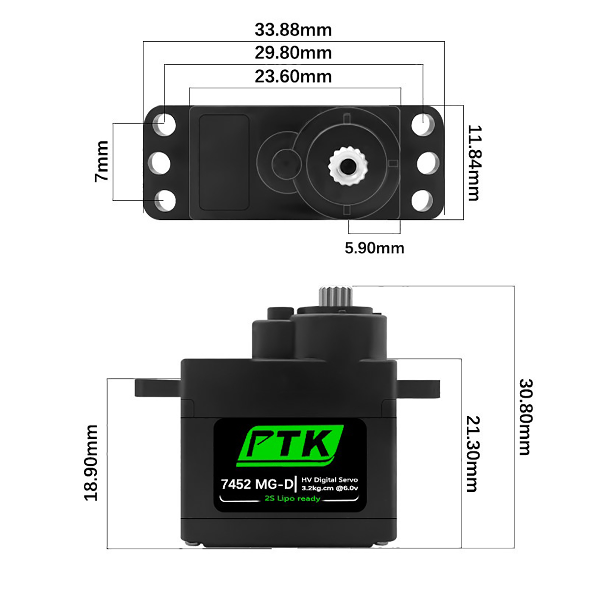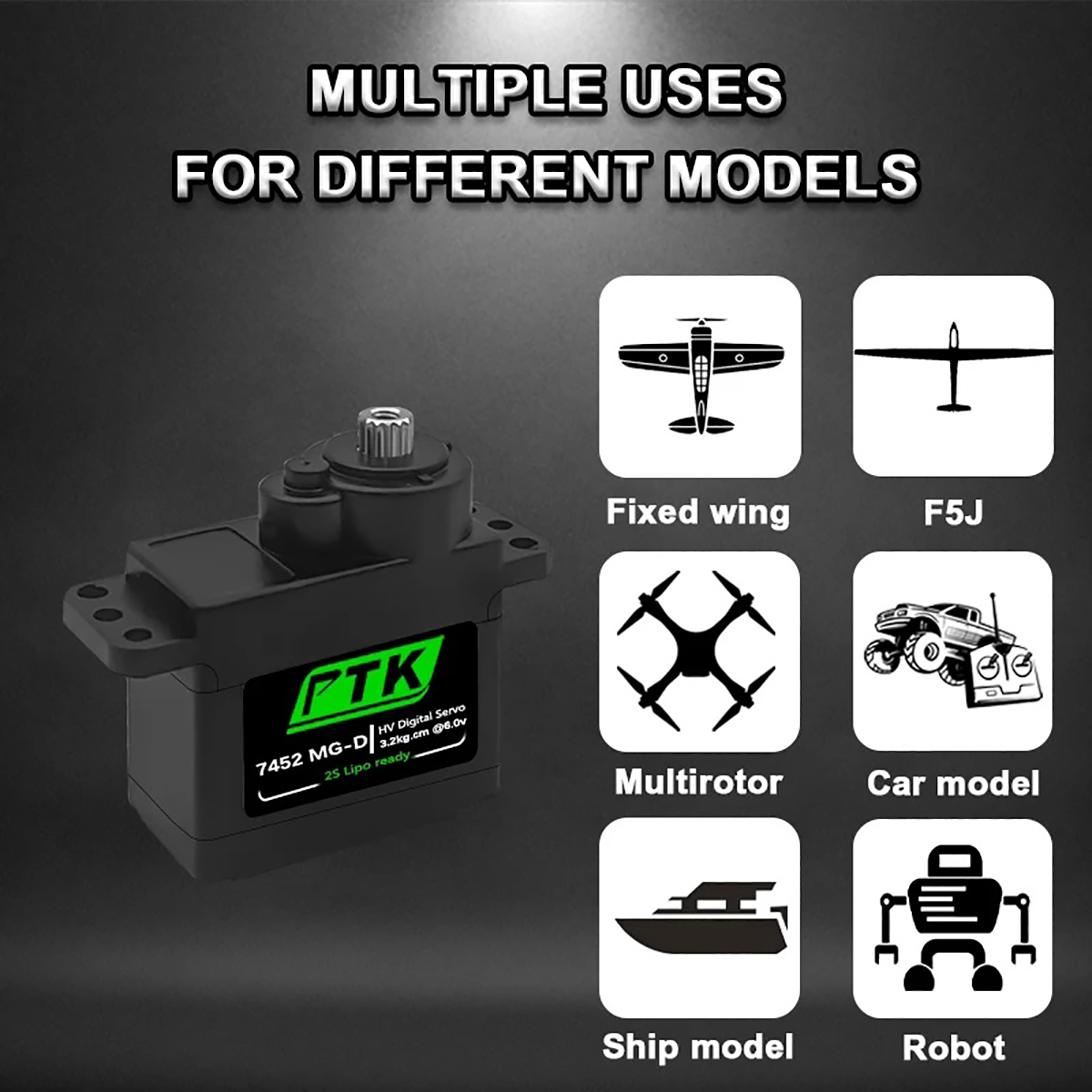 PTK 7452 MG-D 7.4V 4.5Kg Metal Gear 9g Digital Servo for F3P Glider Fixed Wing Helicopter RC Model Car