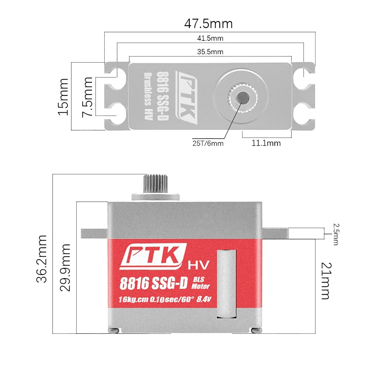 PTK 8816 SSG-D 16kg All Metal Brushless Motor Digital Servo for RC Turbine Helicopter Fixed Wing Aircraft