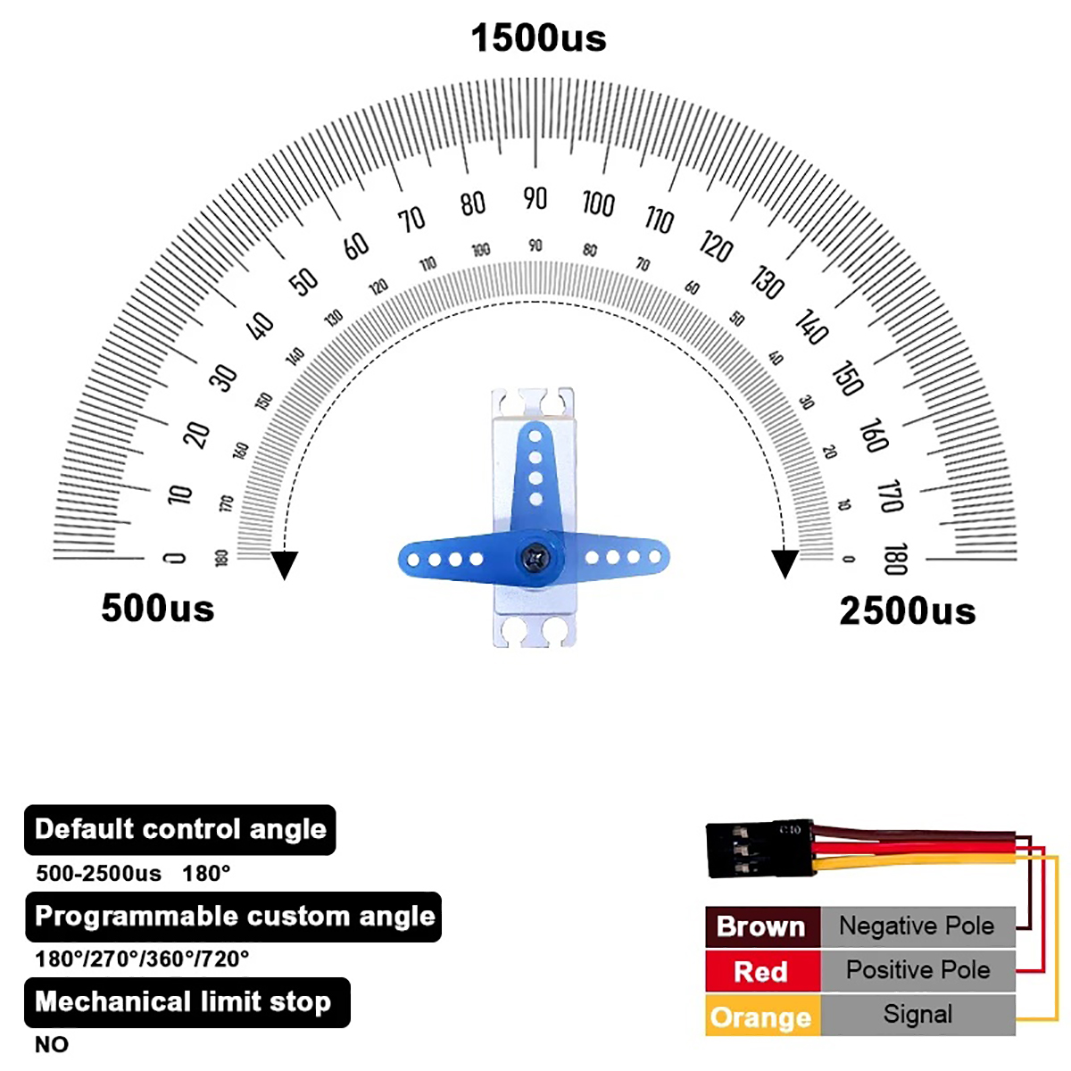 Speed/Stall Torque@ 5.0V: 10kg.cm – 0.171sec/60°