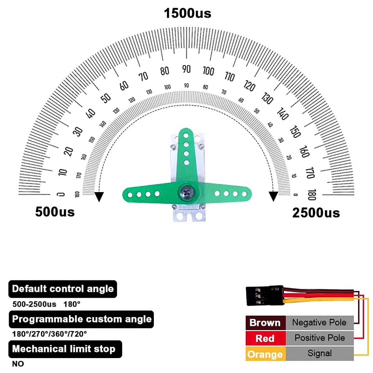 Speed/Stall Torque@ 4.8V: 7.6kg.cm – 0.113s/60°