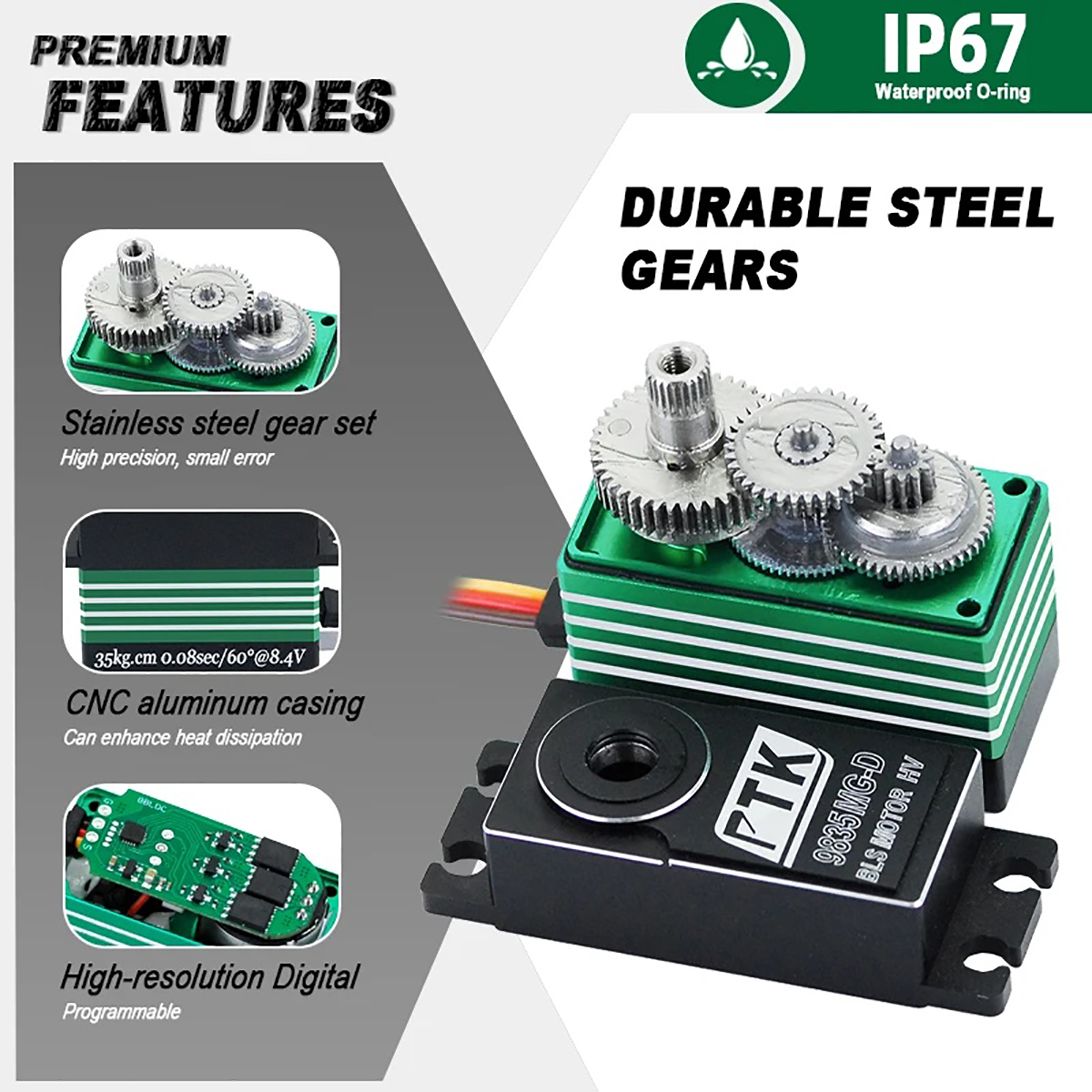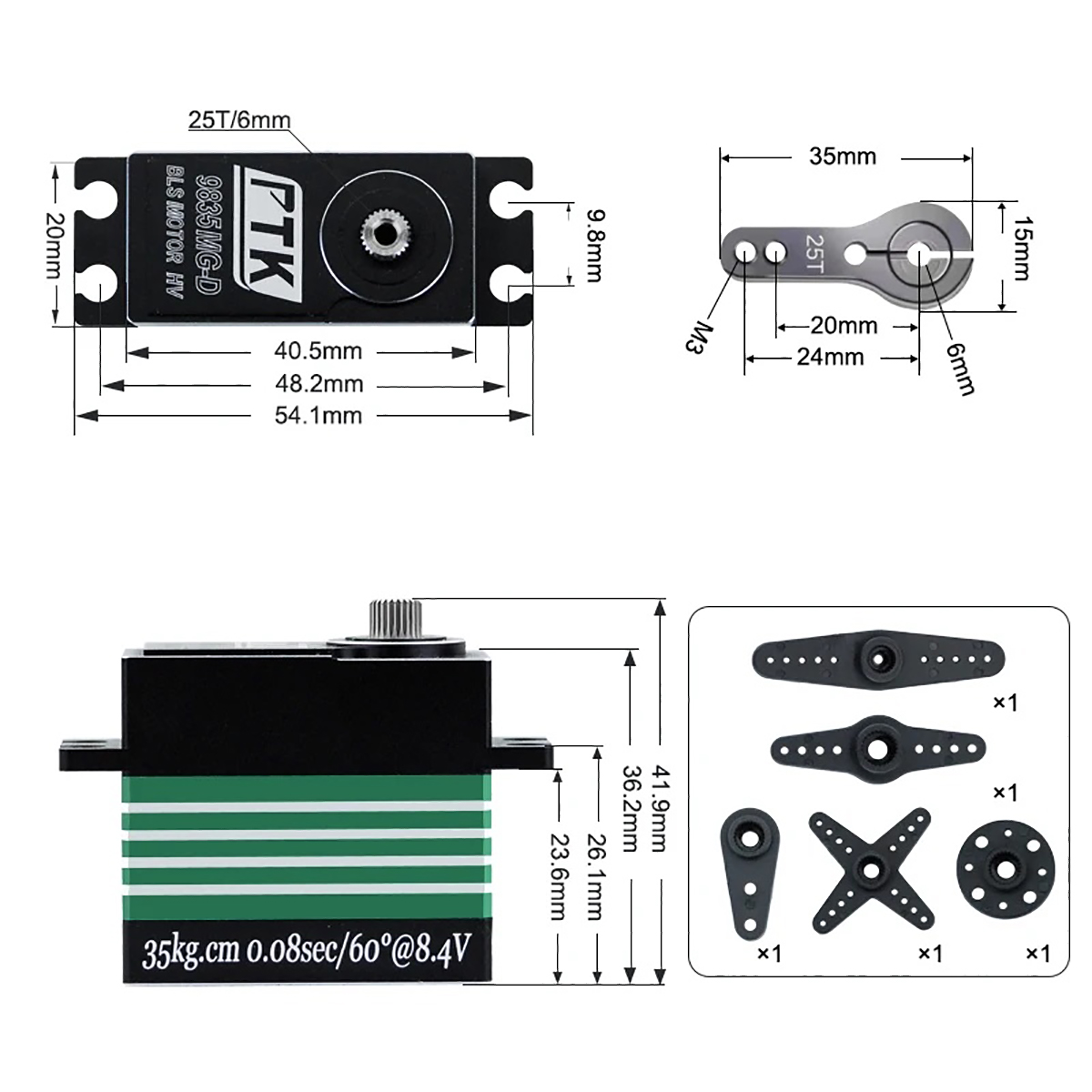 PTK 9835 MG-D 35kg HV Brushless Motor Metal Gear Digital Servo for RC Car Heavy Duty Vehicle Fixed Wing