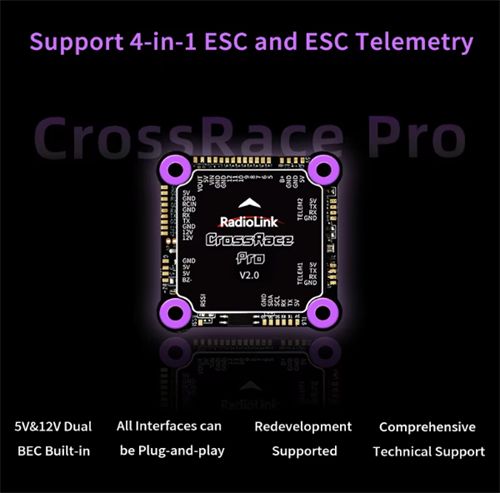 Radiolink CrossRace Pro High-Speed At PosHold Flight Controller OSD Integrated XRotor 60A 4-in-1 Lite 2-8 for Axis Multirotor