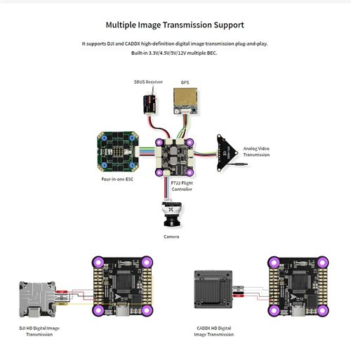 Radiolink F722 Racing Flight Controller OSD Integrated FC 55A Compatible 4-in-1 ESC Plug-and-play and 2-8 Axis Multirotor