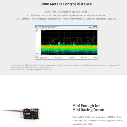 *Excellent Anti-interference: Support SBUS/PPM/PWM signal output, 2.4G 8 Channels with FHSS algorithm reduce overall signal interference.