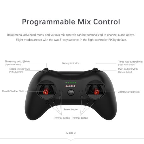 Navigation App setting reminds you next step setting, easy to use it even without user manual.Basic menu, advanced menu and various mix controls can be personalized to channel 6 and above. Flight modes are set with the 3-position switches in the fight controller PIX by default.