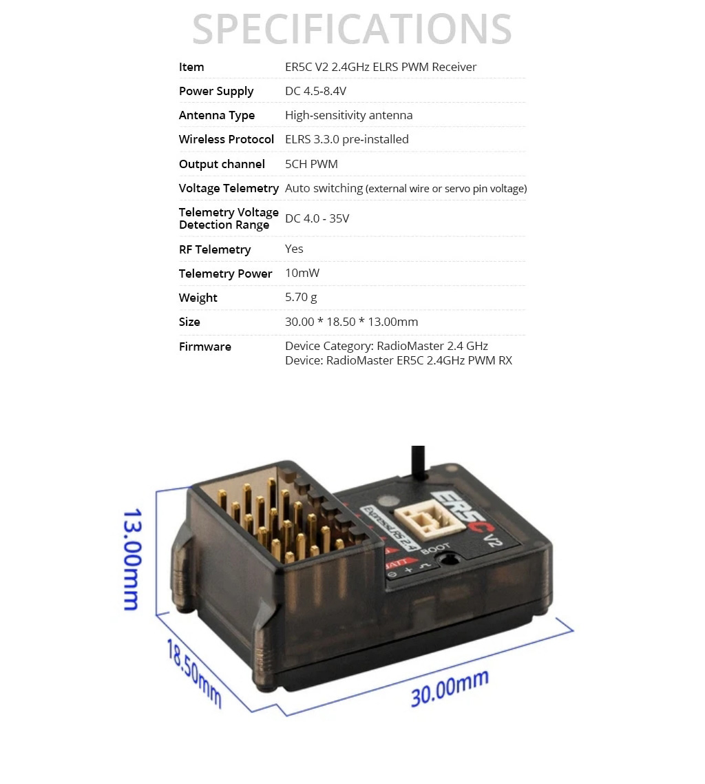 tem: ER5C V2 2.4GHz ELRS PWM Receiver