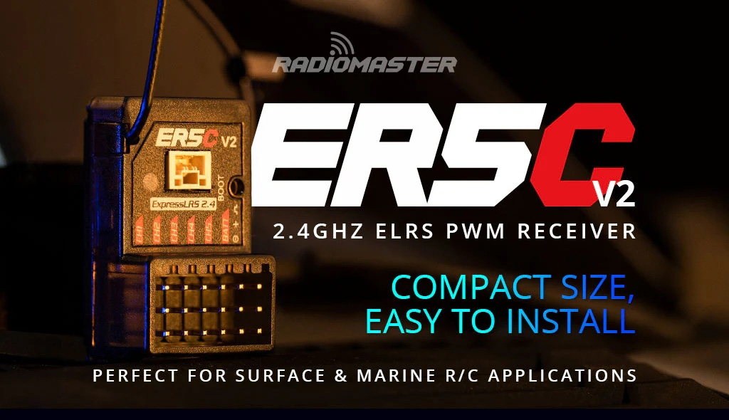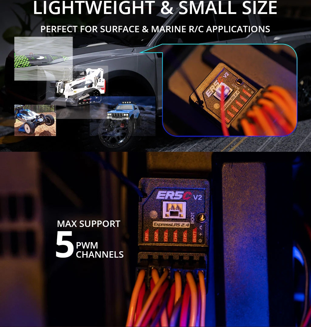 RadioMaster ER5C V2.0 5CH ELRS 2.4GHz PWM Receiver High Performance Fast Response Ultra-Long Range for RC Racing Cars and Boats