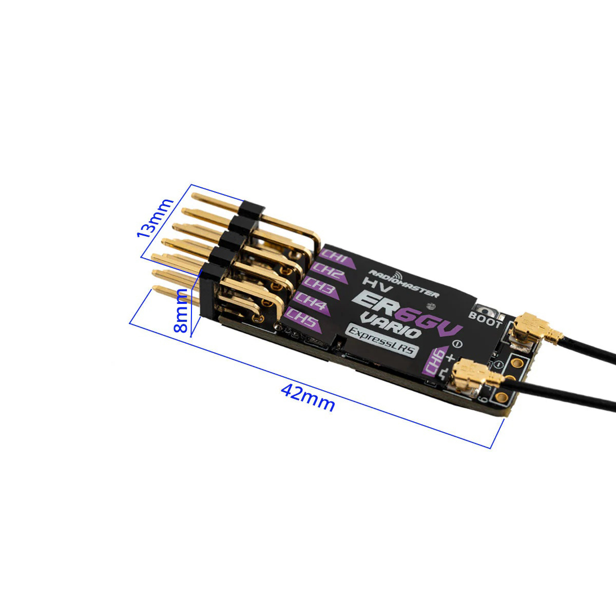 RadioMaster ER6G/ER6GV 2.4GHz ELRS PWM Receiver 6 Channel for Fixed-wing Aircraft or Glider
