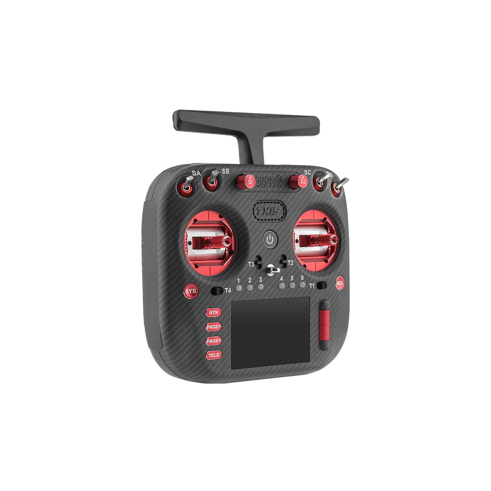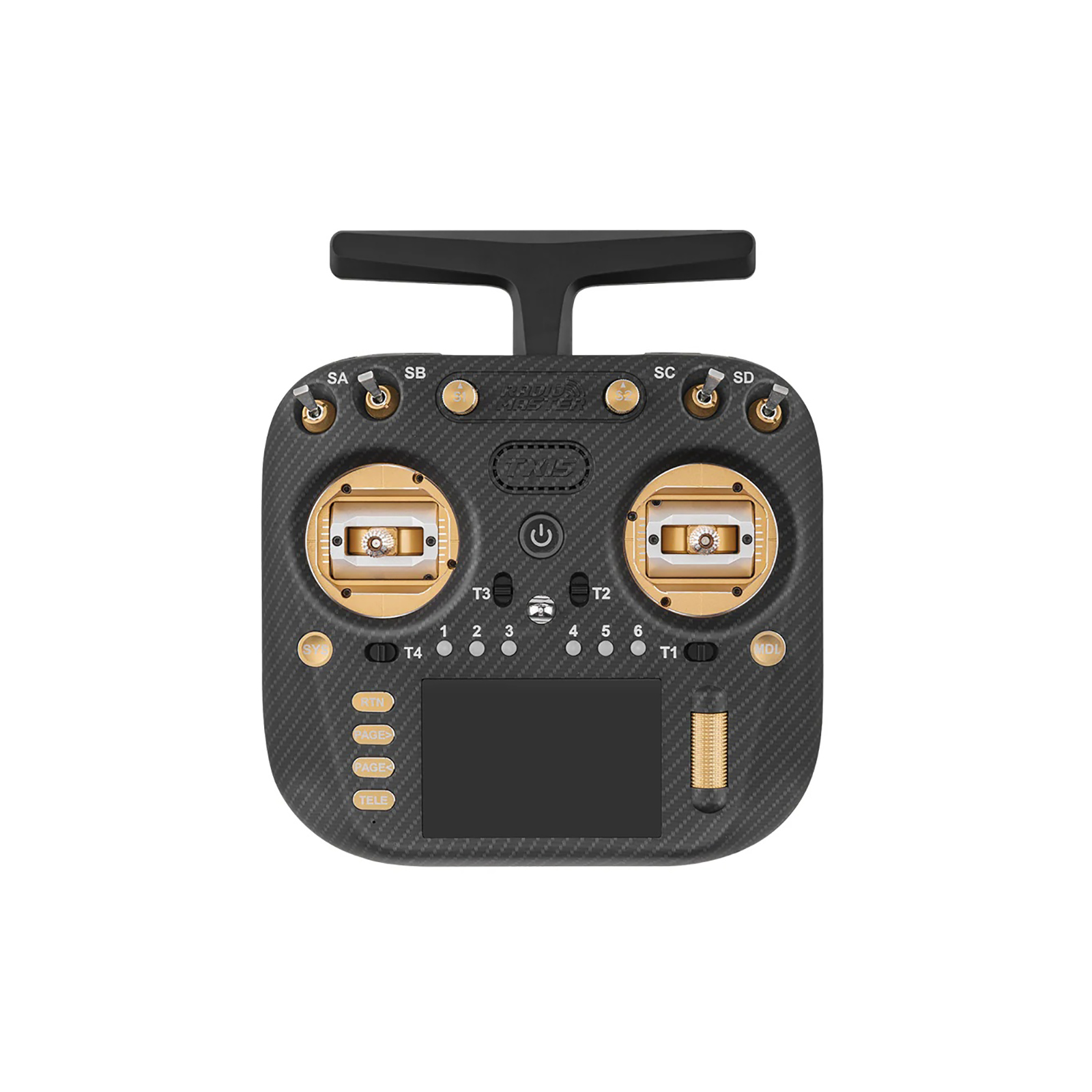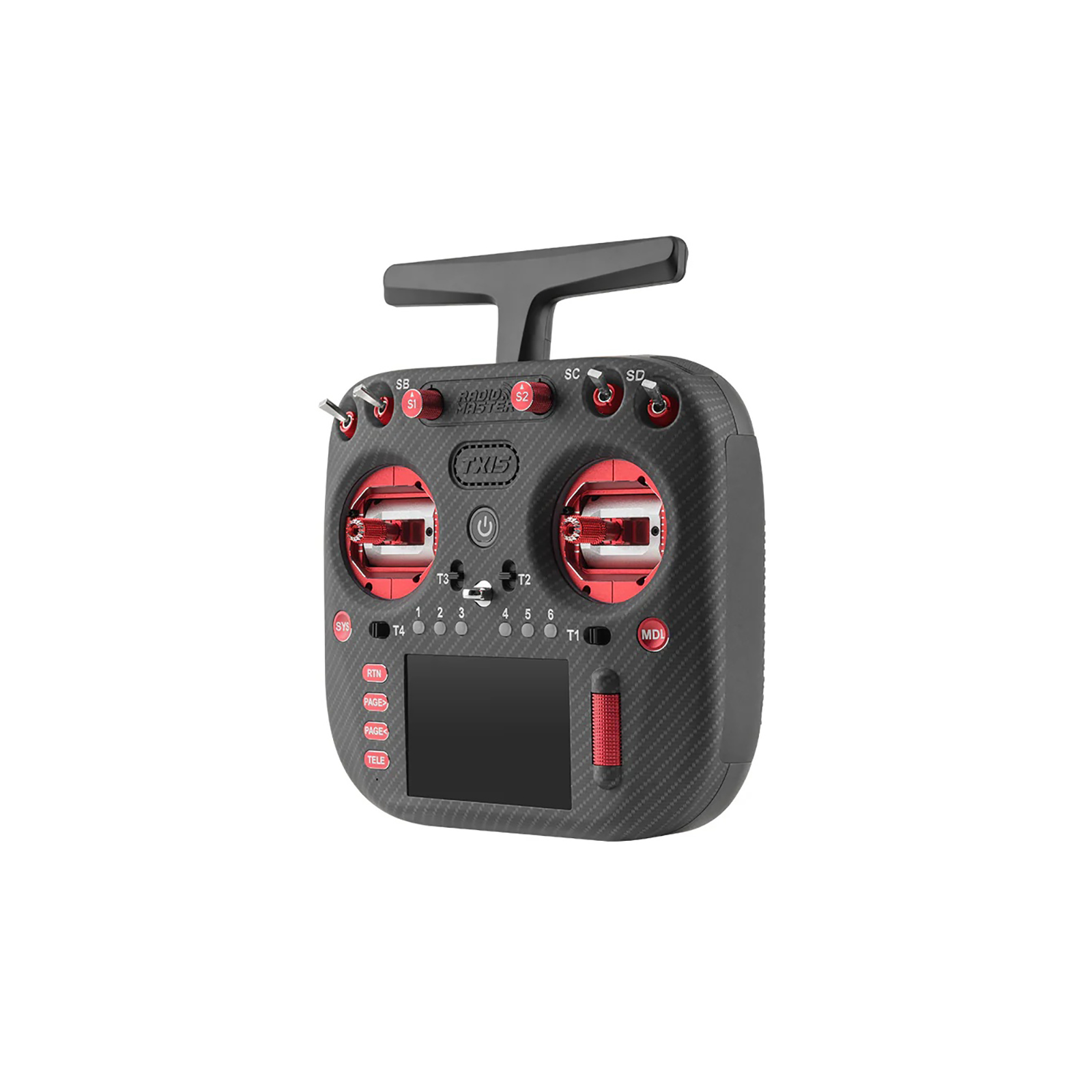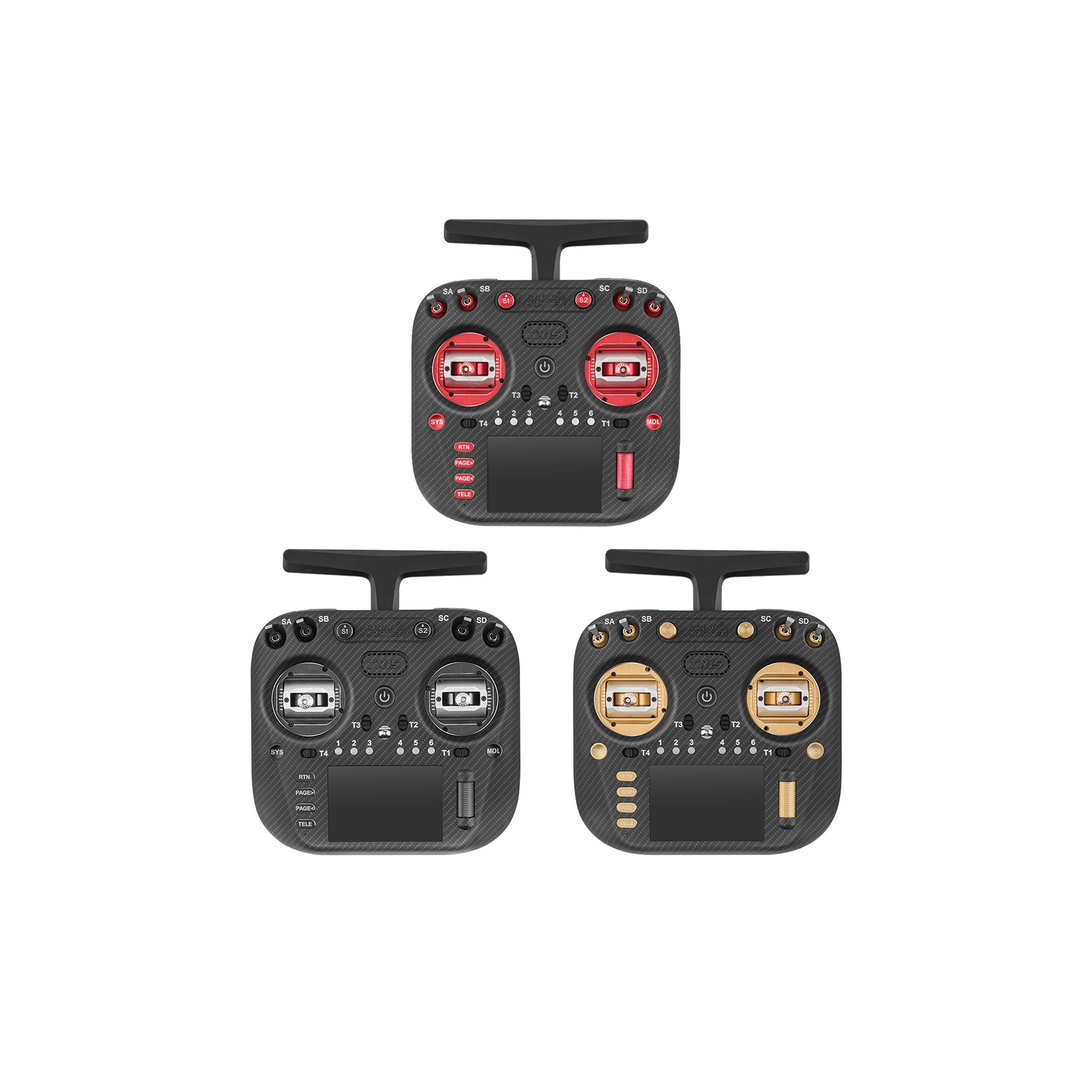 Enjoy sharp visuals on the 3.5-inch IPS touchscreen with 262k color resolution and 600 nits brightness, even in sunlight. The TX15 MAX boasts AG02 CNC aluminum gimbals in anodized red, black or gold, upgraded aluminum buttons, a scroll wheel, and a carbon-fiber-look case for a premium feel. Integrated RGB LED lights around the gimbals allow customizable LUA-controlled lighting. It includes advanced cooling, a USB-C charging port, SIM connectivity, firmware updates, and fast memory access for top-tier performance. We’ve included additional switches so you can swap out the shoulder buttons with either a momentary or two-position latching switch—perfect if you prefer a traditional switch over a button. Prefer the standard model? See the TX15 Standard.